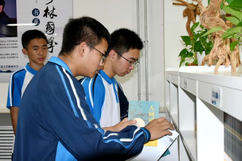 仪式结束后,与会领导和师生代表移步秀林国学书屋进行参观交流。赠人玫瑰,手留余香;情系附中,播撒希望。一架架整齐的典籍、一排排干净的桌椅,书香袅袅、沁人心脾,“秀林国学书屋”的牌匾在优雅的环境中、明亮的灯光下熠熠生辉。