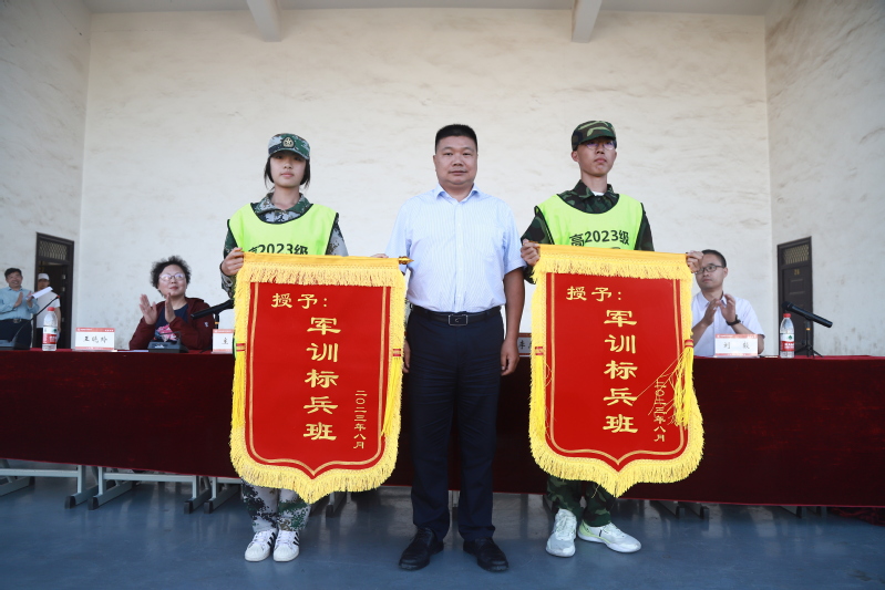 接下来,学校宣读了军训标兵和内务标兵名单,公布了军事科目和课间操汇报获奖班级的名单,并为获得“军训标兵班”的班级授旗。