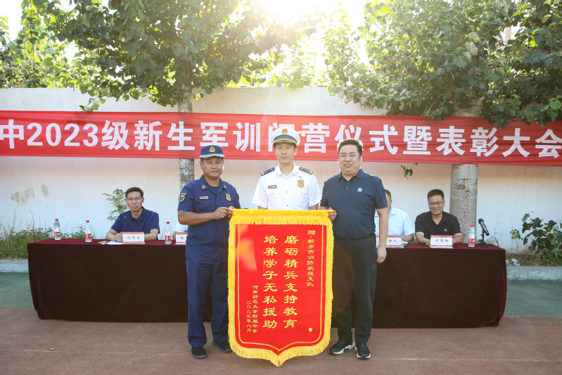 滚滚热浪,铸炼钢铁意志;巍巍军风,展现学子英姿。8月28日下午,我校2023级高一年级、初一年级军训闭营仪式暨表彰大会分别在东西校区操场举行。新乡军分区党委常委、战备建设处上校处长王宝贵,新乡市消防救援支队副支队长王亮,校领导张银付、李杰明、刘齐晋、杨呈杰、陈景任、侯伟出席闭营仪式。施训单位全体教官、我校相关职能部门负责人、2023级全体级班主任和学生共同参加闭营仪式。仪式分别由刘齐晋和侯伟主持。