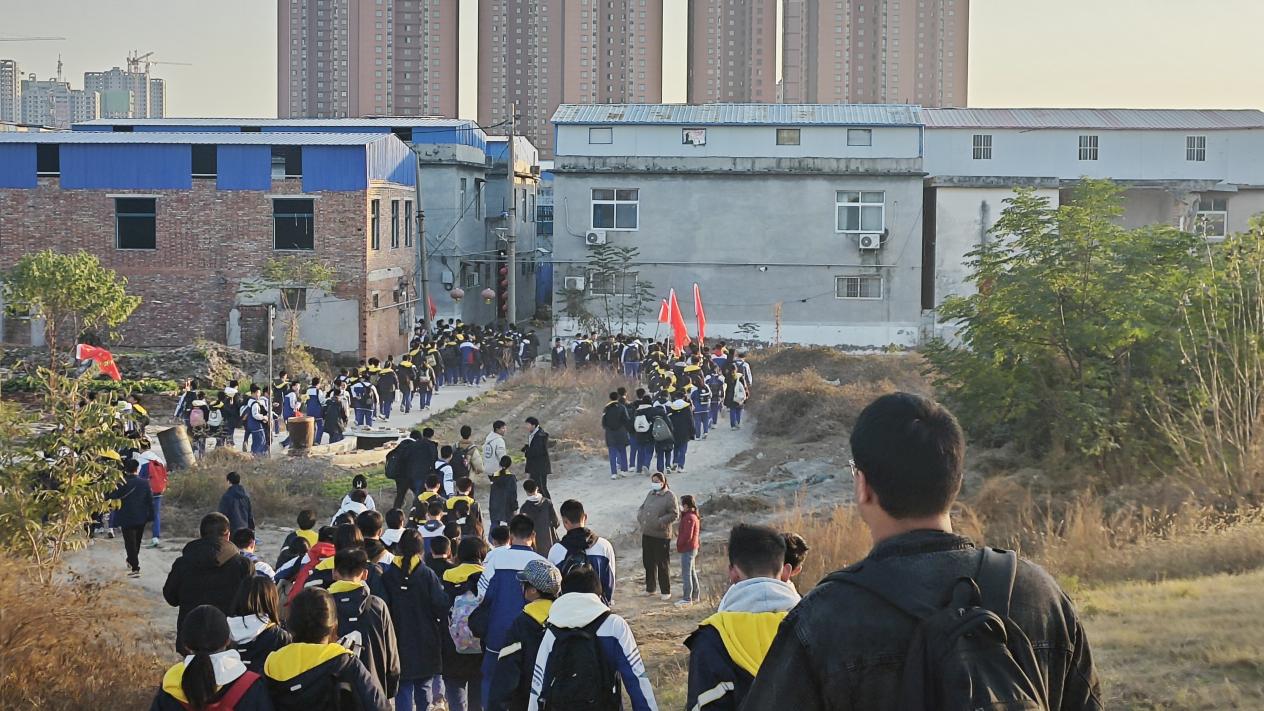 为了让初三学生亲近自然,缓解紧张学习的压力,同时让学生磨炼自己的顽强意志,培养吃苦耐劳精神,初中部2021级于11月17日下午组织全体师生举行了初中部首届实践育人暨远足拉练活动。