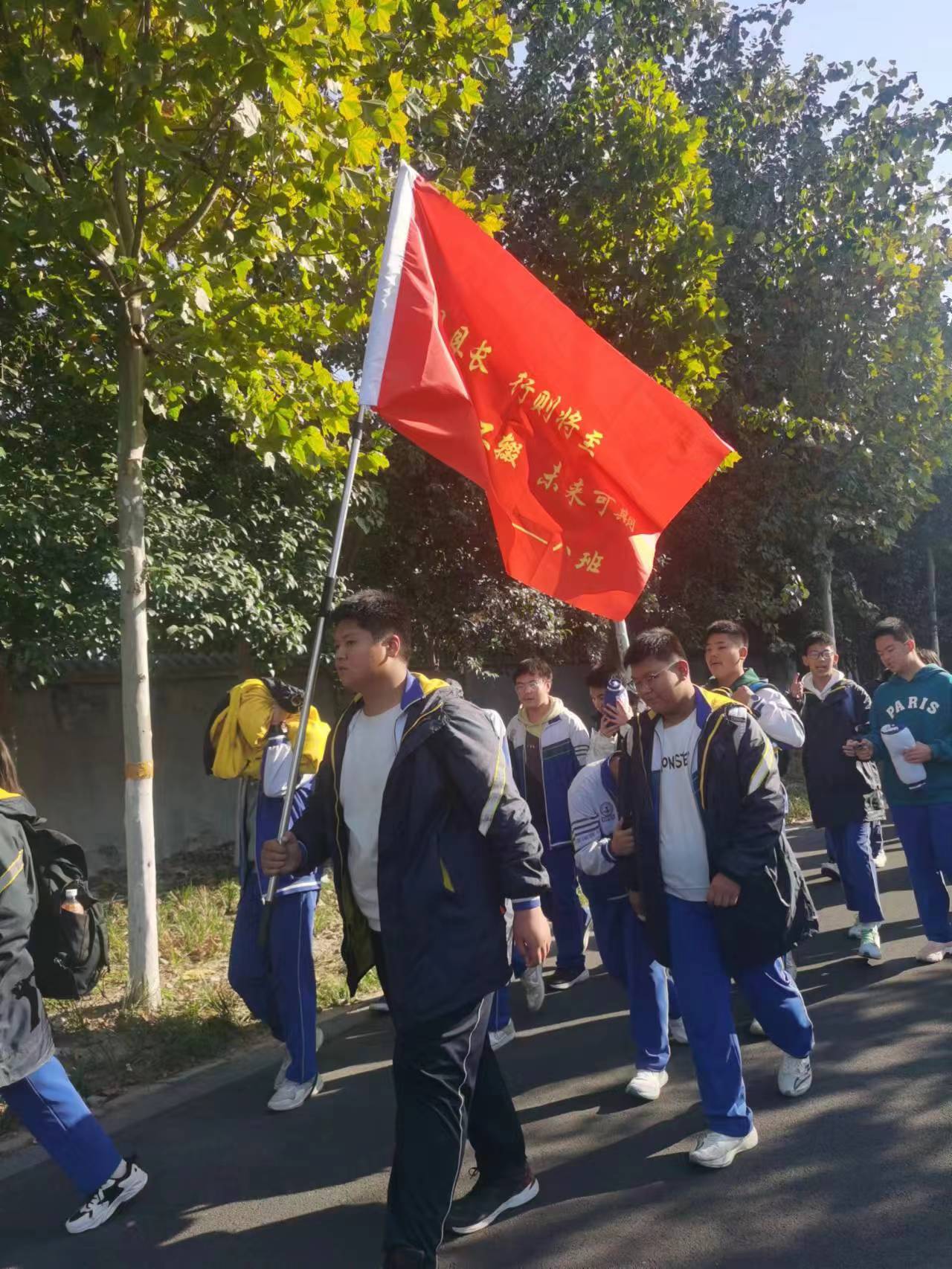 下午14时,远足队伍准时出发。同学们挥舞着班旗,带着独属于青春的意气阔步向前。他们步伐整齐,意气风发,一路欢歌笑语,一路口号嘹亮,成为道路上一道亮丽的风景。