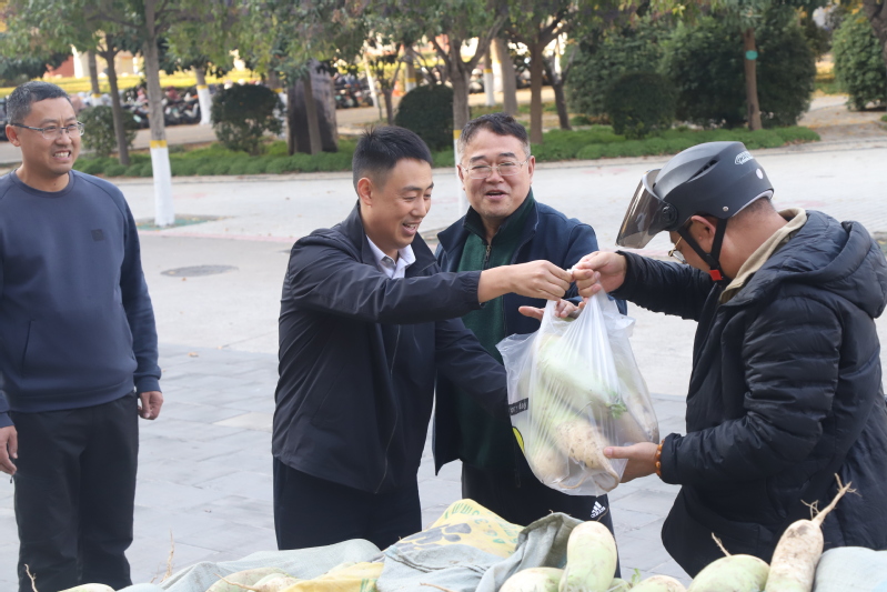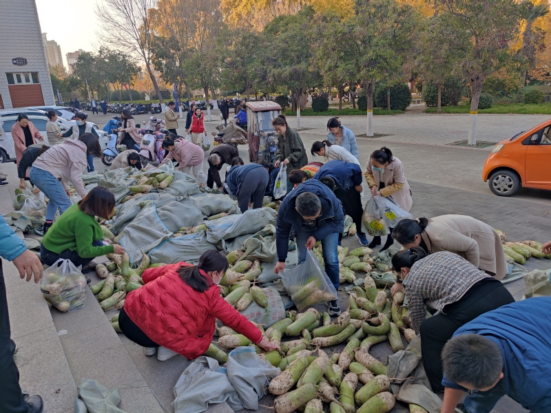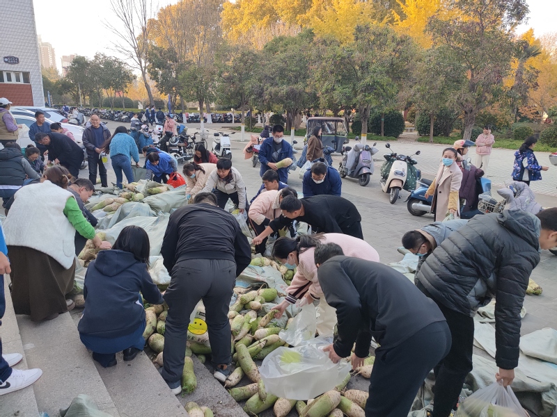 当天下午,我们收到了来自新乡市凤泉区何屯社区党总支的一份特别礼物——一批新鲜白萝卜。这批绿色生态农产品由该社区组织村民种植并捐赠给我校教职员工,以表达对教育工作者的关爱和敬意。