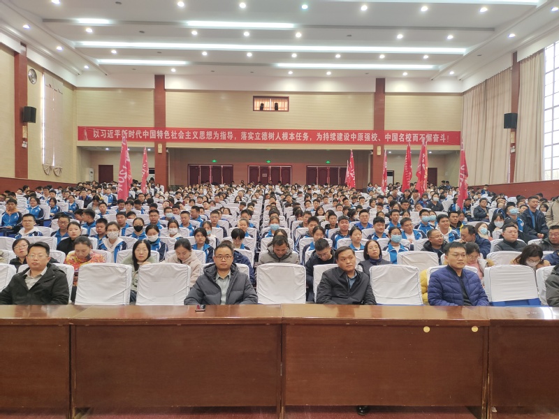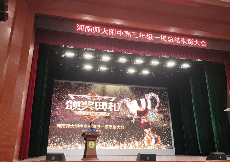 为总结经验,表彰先进,树立榜样,鼓舞士气,12月5日下午,金龙高三年级在西校区大礼堂隆重举行高三年级一模考试表彰大会。河南师大附中副校长陈景任,高中部学部主任刘毅 、副主任李忠堂、副主任刘付生,高三年级主任以及全体师生和家长代表参加表彰会。会议由2112班王雨晨同学主持。