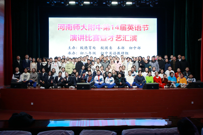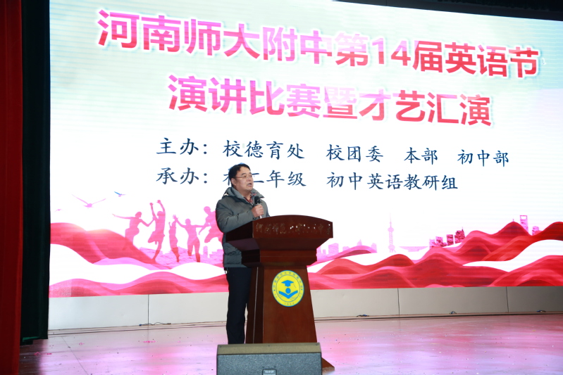 为激发学生对英语学习的兴趣,传播中华优秀传统文化,12月25日下午,我校第十四届外语节系列活动展演在西校区教工礼堂成功举办。校领导李杰明、刘齐晋出席活动,相关部门负责人以及师生代表600余人参加活动。汇演活动由初二年级贾鹏浩和张艺宁两位同学主持。