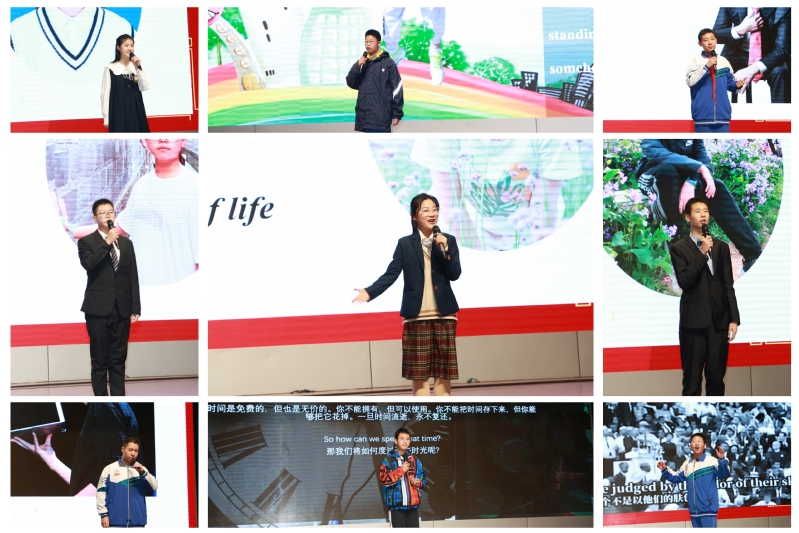 在英语演讲比赛环节中,来自初二年级的9位同学在舞台上个个精神饱满、落落大方,凭借扎实的英语综合能力,恰当生动的口语表达技巧赢得在场观众好评。