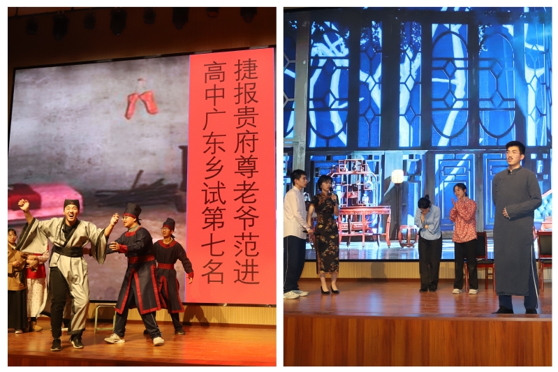 在课本剧展演中,同学们对语文课本的经典篇目进行了重新演绎,将文字转化为生动的舞台形象,为观众带来了一场与书本对话,与文学共鸣的视听盛宴。