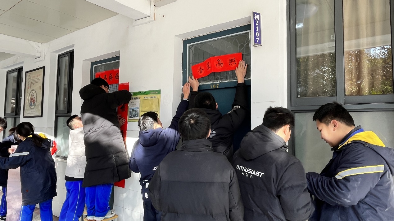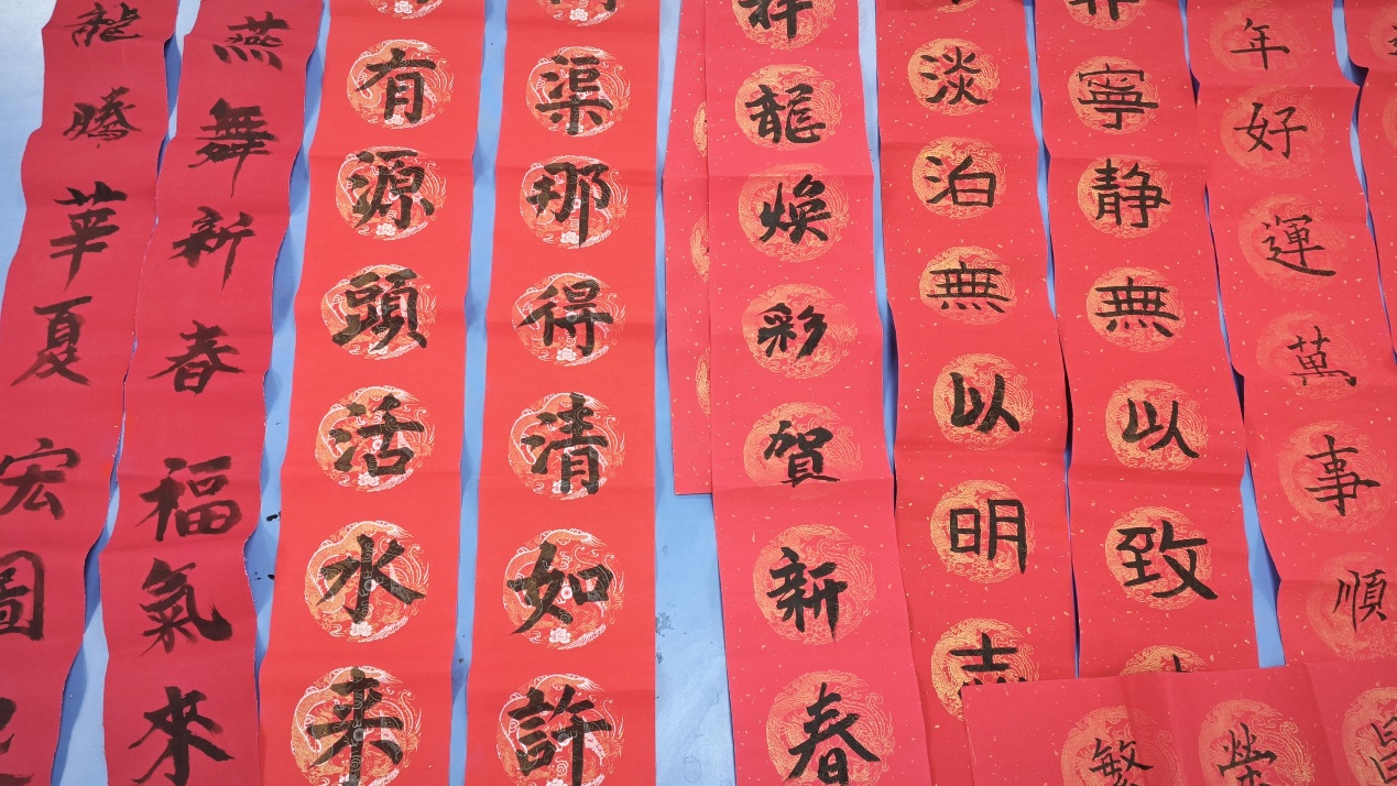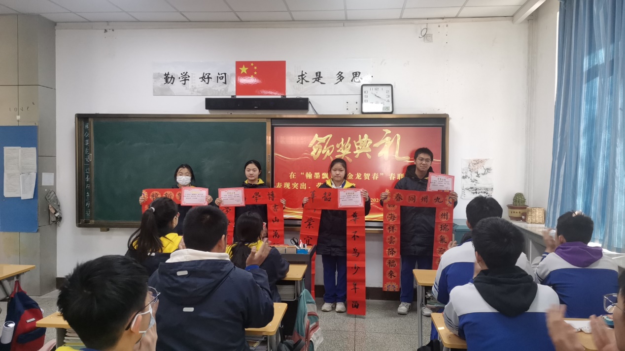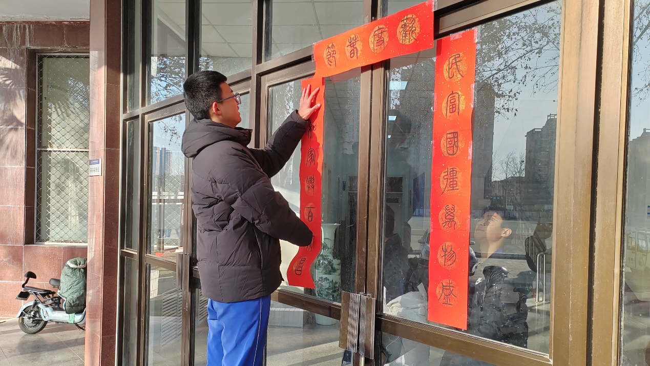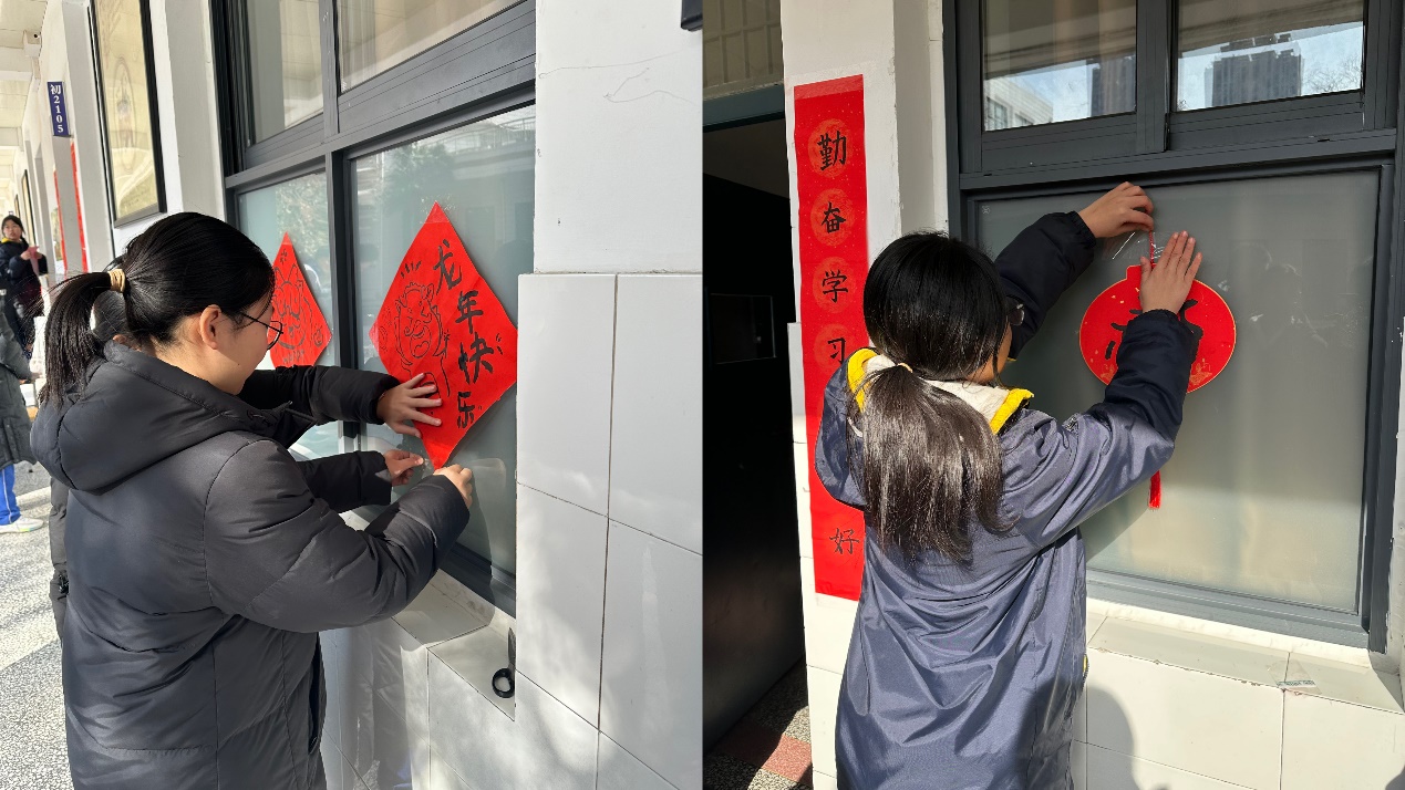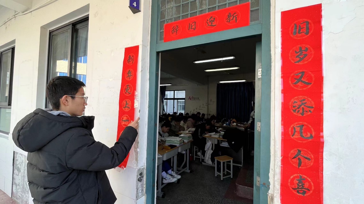 红幅铺展,一幅幅饱蘸浓墨、精美喜庆的对联装点着教室和办公室,洋溢着浓浓的年味。“龙年好运万事顺,家道昌隆百业兴”、“旧岁又添几个喜,新年更上一层楼”、“神州金龙蒙化雨,华夏娇子沐春风”等一幅幅寓意吉祥的春联,既满载着辞旧迎新的美好祝愿,又有对美好生活的期盼展望。