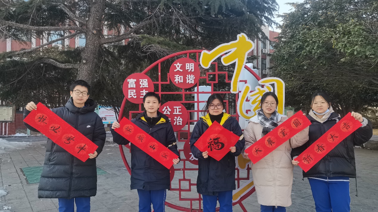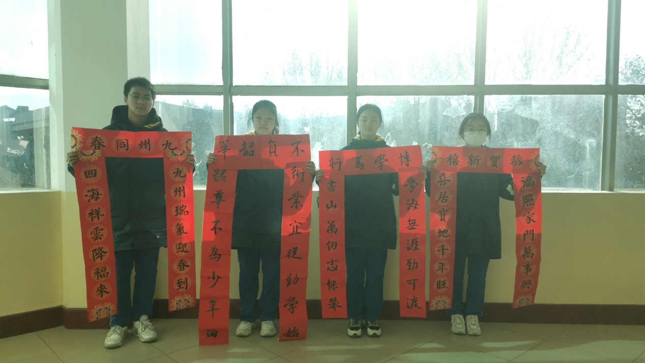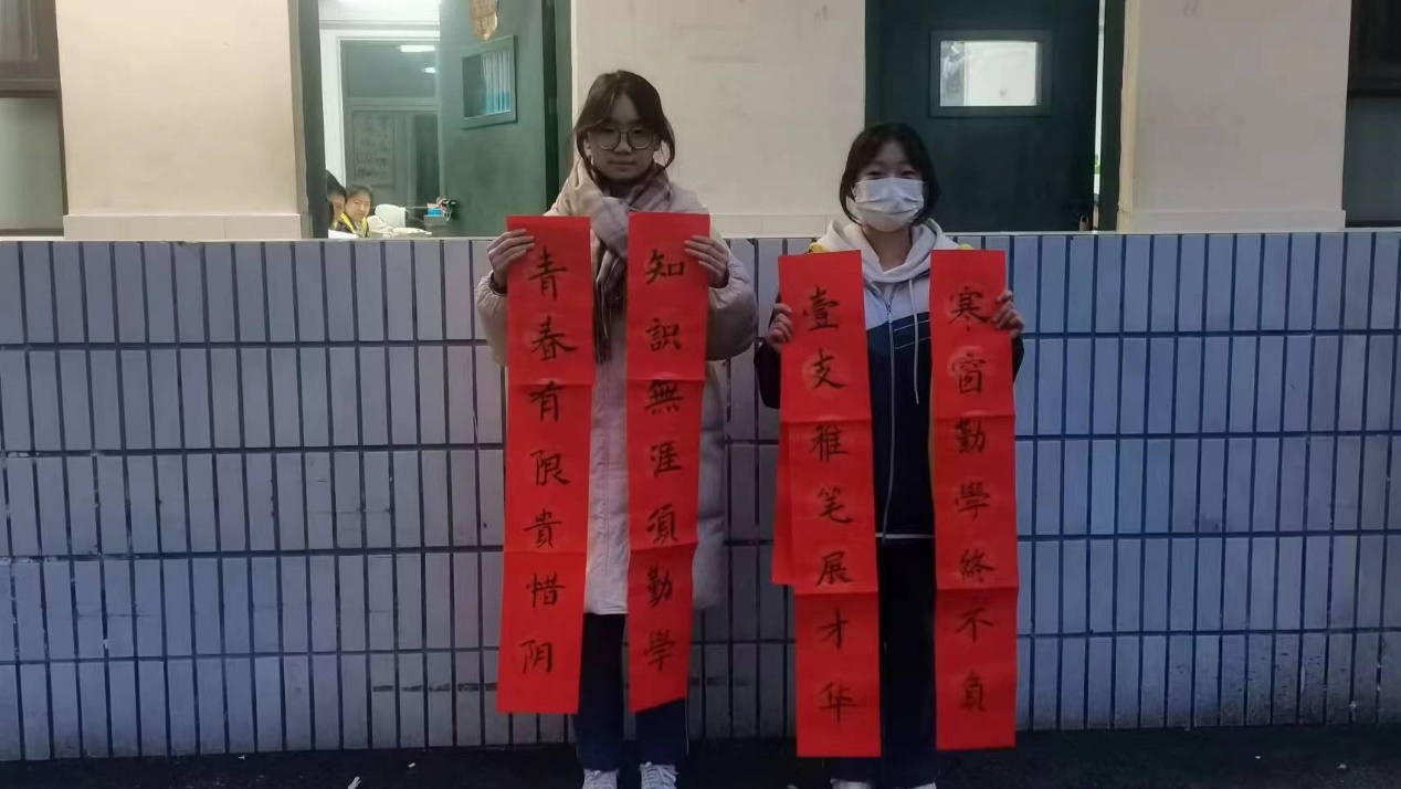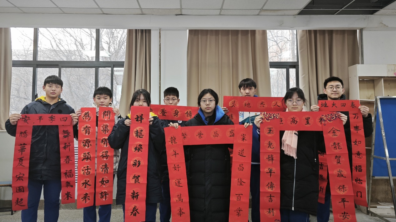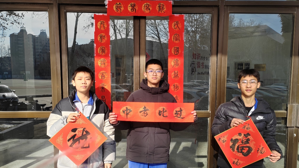 翰墨飘香,金龙贺春,献瑞接福,师生同乐。新年写福字、写春联是欢庆春节的传统习俗,表达了人们对美好生活的向往,饱含着浓浓的中国色彩、中国韵味、中国文化。此次手写春联活动,为即将到来的龙年新春带来了别样的温暖,此次既让我们领略了中国优秀传统文化的魅力,又寄托了初中部初三全体师生对新的一年的向往和祝福。在接下来的教育教学活动中,我们将坚持五育共举,在“我们的节日”中彰显文化自信!