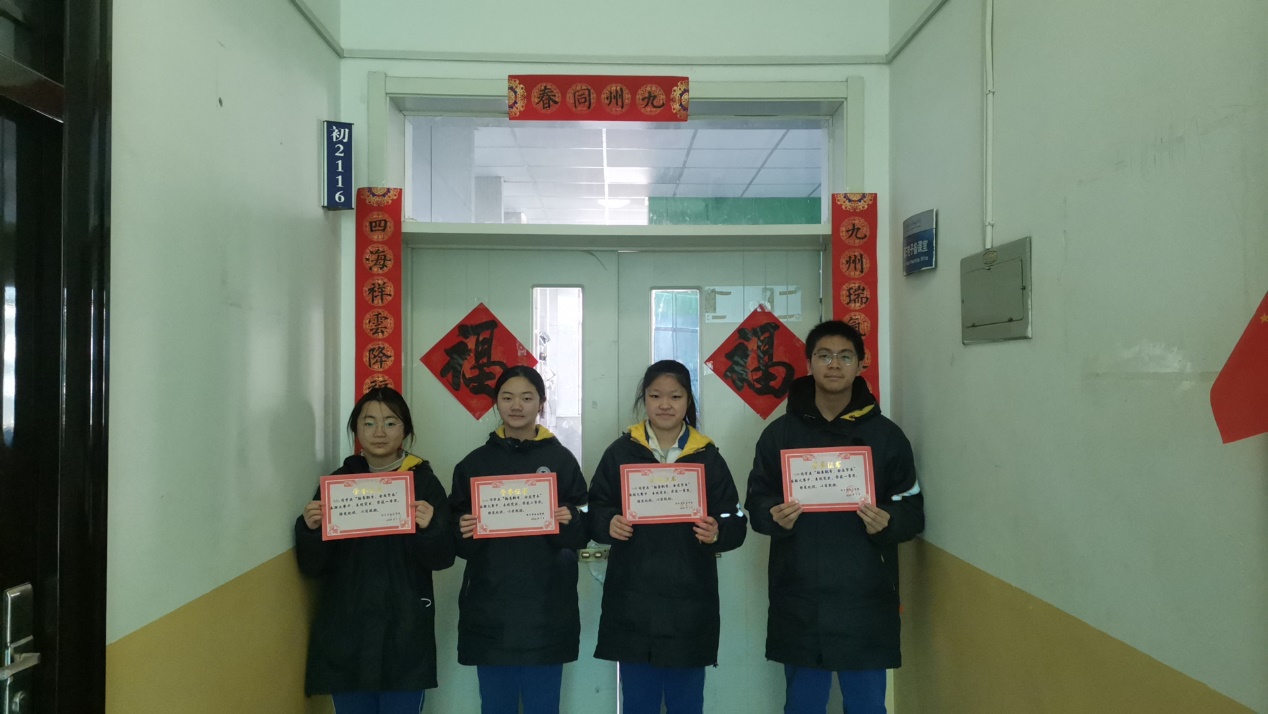 初三年级语文组将对联作品进行了集中评比。颁奖后,同学们把优秀作品张贴在了教室、办公室的门窗上。盈盈中国红引来了师生们驻足欣赏。