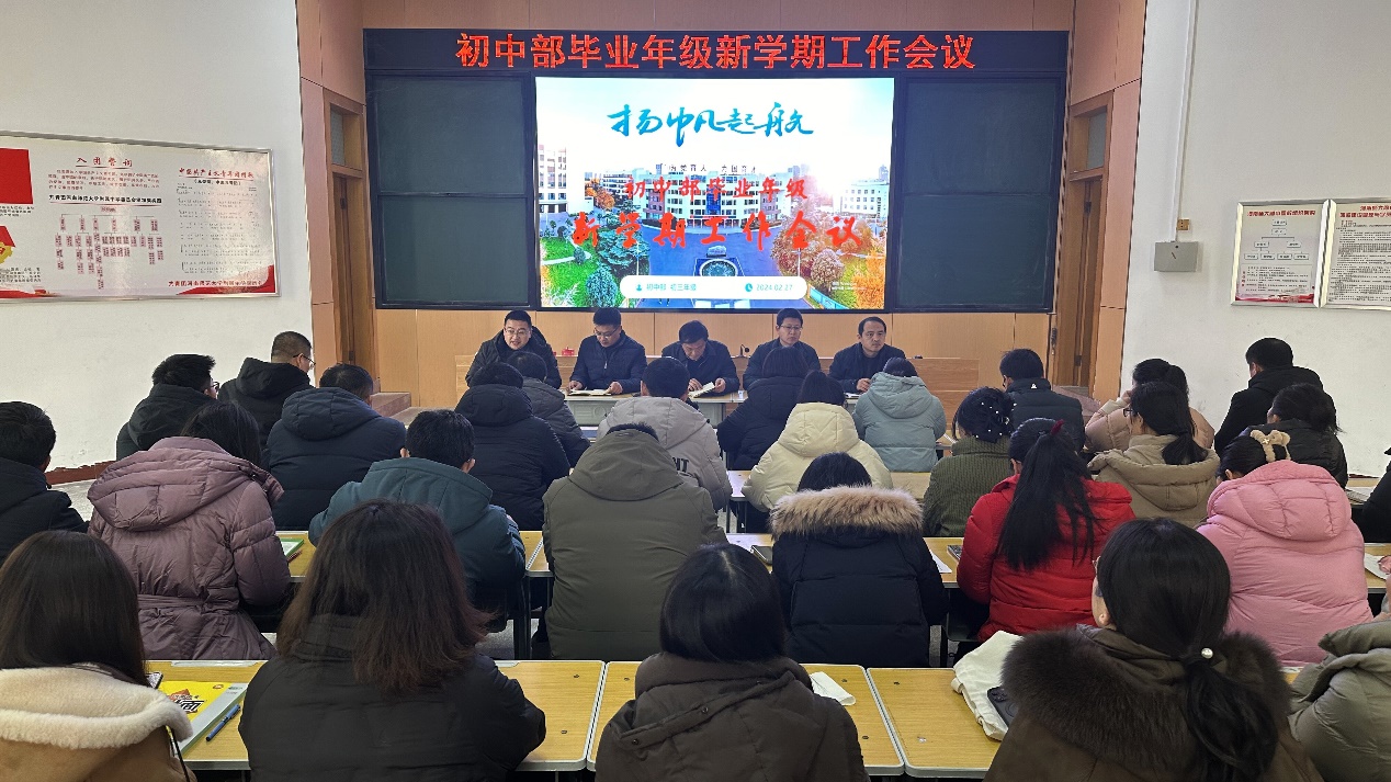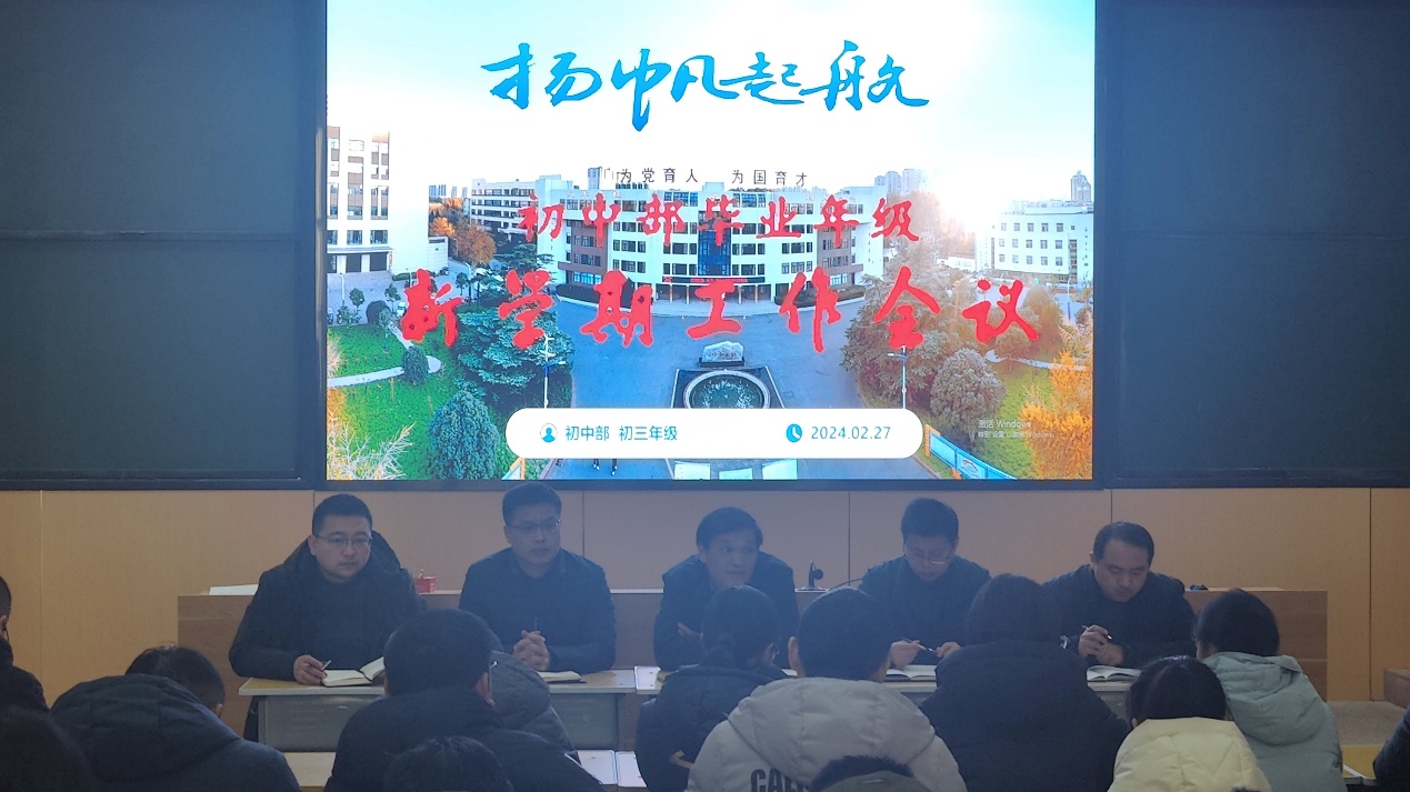 扬帆启航今日事,共赴新程谱新章。本次会议,为初中部毕业年级下一阶段教育教学工作的有序开展、教师教育教学能力的不断提升、学生成绩的稳步提高指明了方向,奠定了基础。相信在接下来的日子里,师生们定能行稳致远,再创佳绩!