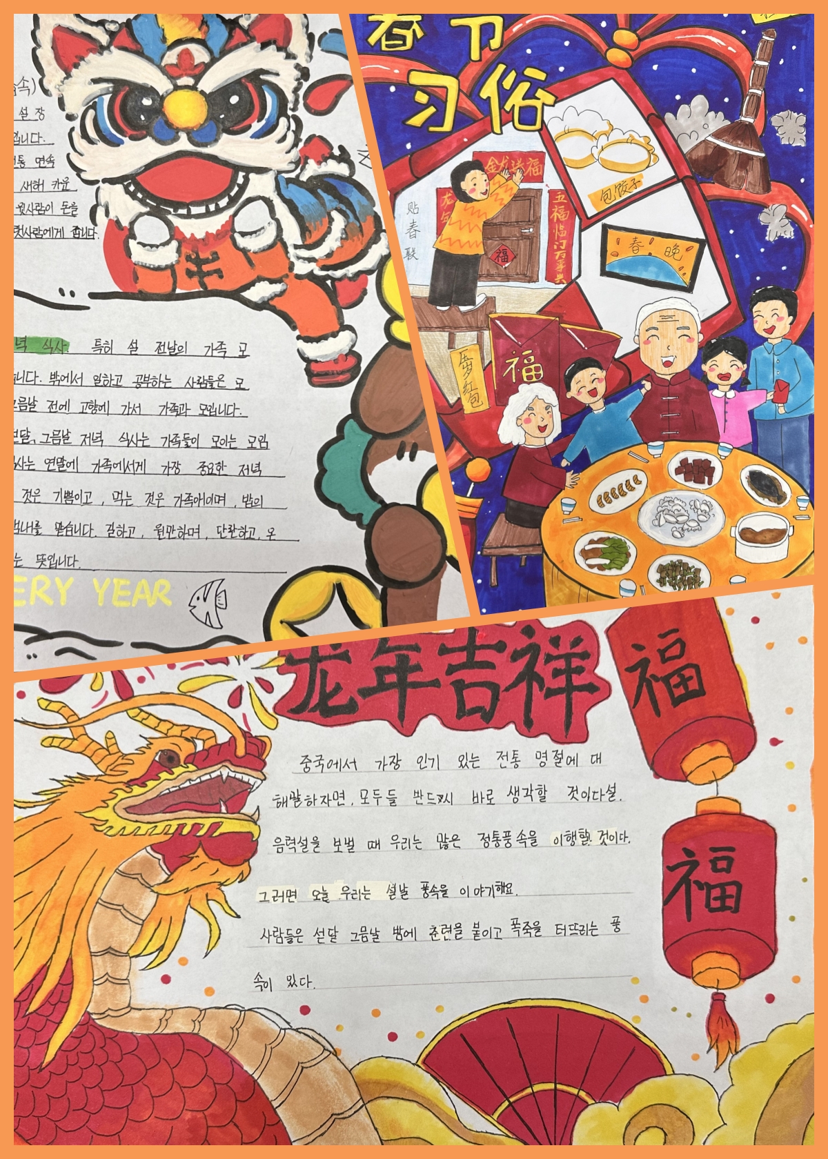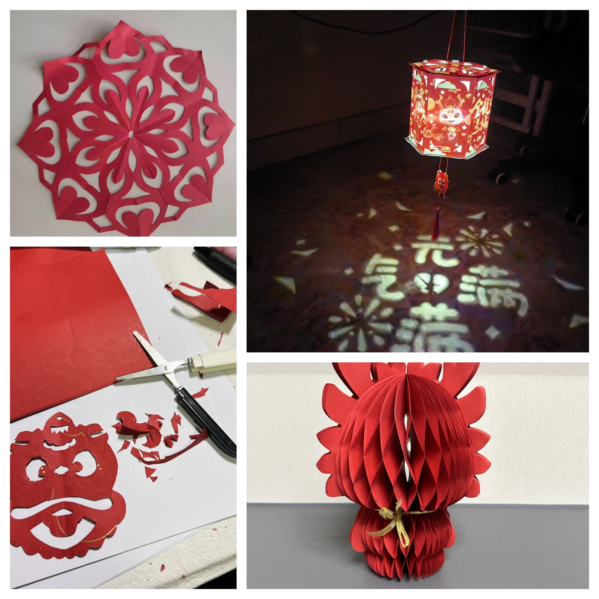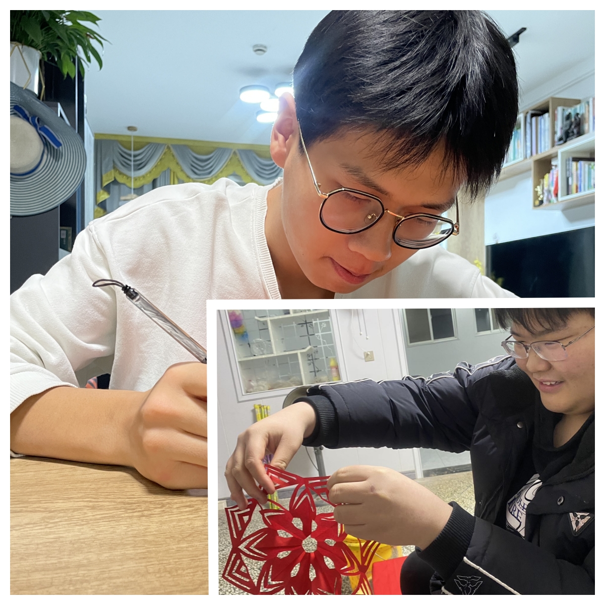 看,他们充分发挥创意,设计制作各种春节、元宵节主题海报,展示对传统文化的热爱和理解!看,他们学习剪纸艺术,剪出各式窗花,装点卧室客厅,增添节日氛围!看,他们挥毫泼墨,书写一幅幅寓意吉祥的对联,表达对美好生活的祝愿和期许!