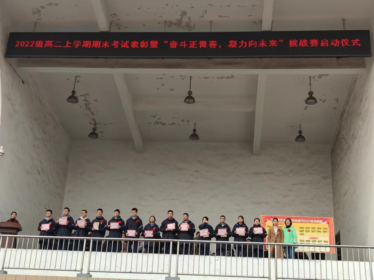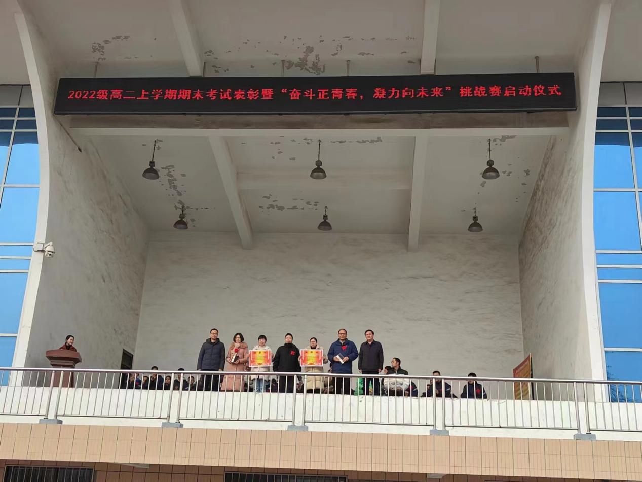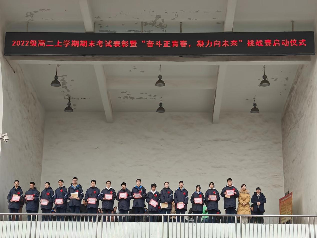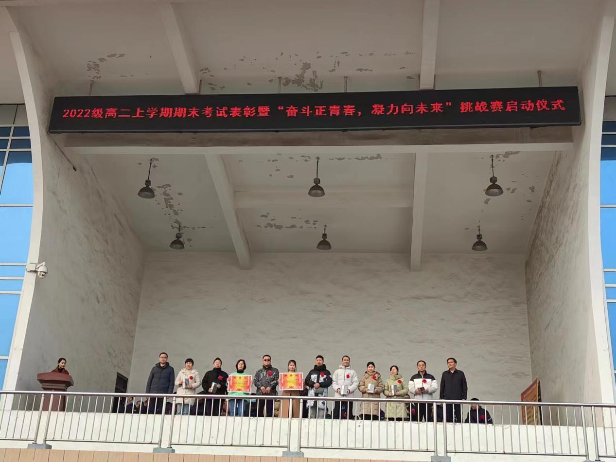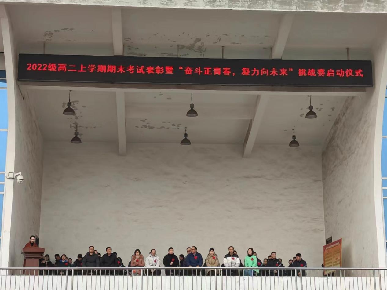 为表彰先进,树立榜样,进一步激发学生拼搏奋进、努力超越的昂扬斗志,2024年3月1日上午,高中部高二年级在操场隆重举行上学期期末考试表彰暨“奋斗正青春,凝力向未来”挑战赛启动仪式。校领导陈景任出席会议,高中部主任刘毅,副主任李忠堂以及高中部高二年级全体师生参加了此次活动。本次会议由高二年级教师陈晓静主持。