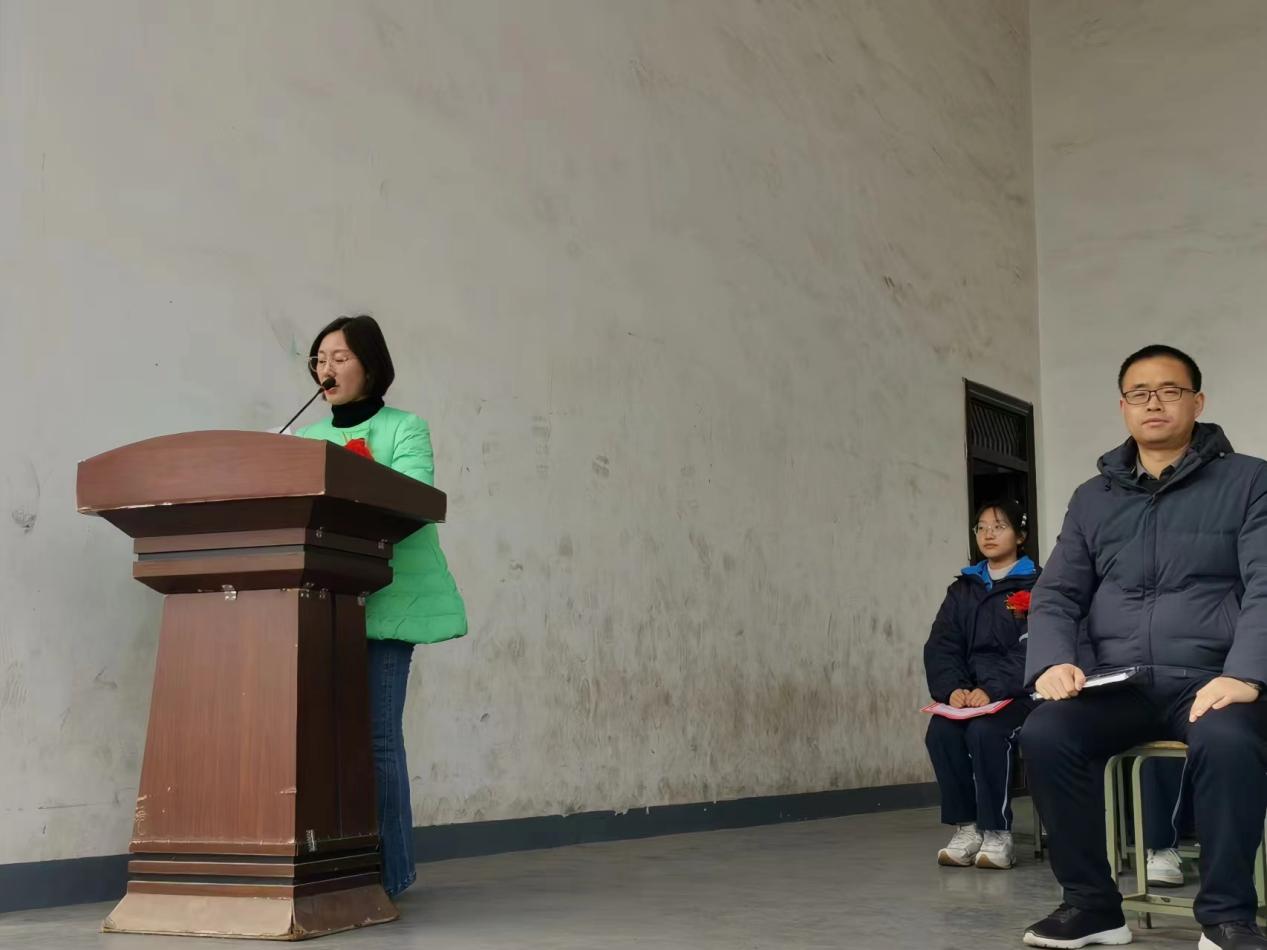大会第三项:教师代表发言。王向华老师带来新学期的寄语,希望同学们珍惜时间、沉稳认真、持之以恒、英勇无畏,开启自己的飞驰人生!
