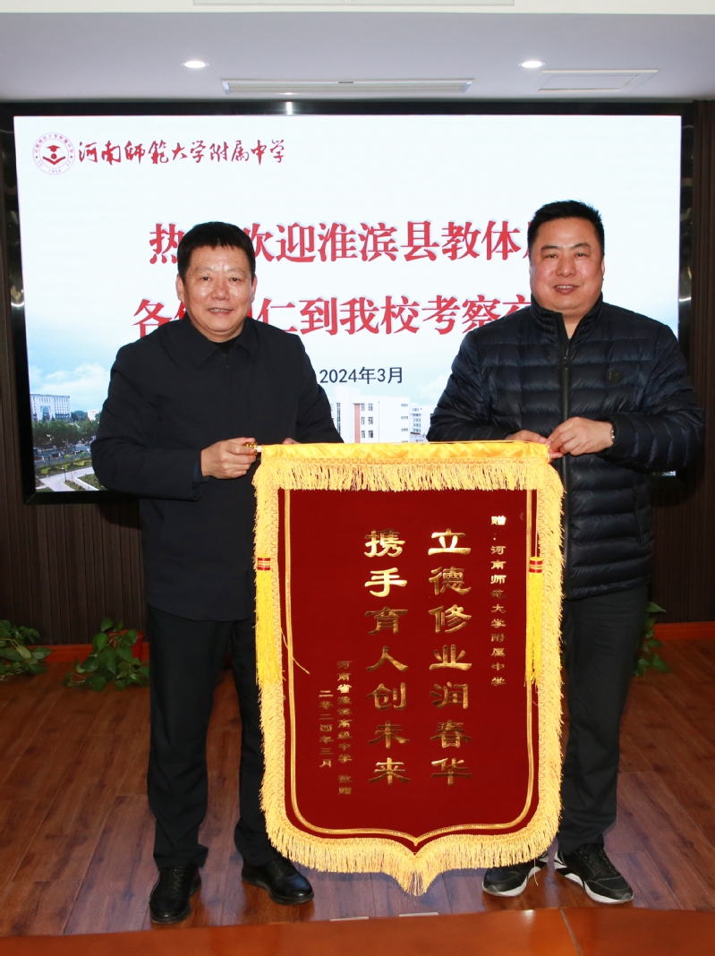 最后,淮滨县教体局党组成员、淮滨高中党委书记、校长李明代表考察组向我校赠送了锦旗,并诚邀我校领导老师到淮滨做客交流、考察调研。座谈会在热烈的气氛中圆满结束。