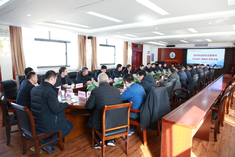 3月2日下午,信阳市淮滨县副县长王廷俊带领淮滨县政府办公室副主任科员郑良玉,县教体局党组成员、淮滨高中党委书记、校长李明,县教体局党组成员、淮滨二高党总支书记、校长贾旷,县教体局党组成员、业务局长易炳照以及淮滨高中、淮滨二高相关部门负责人前来我校考察交流。