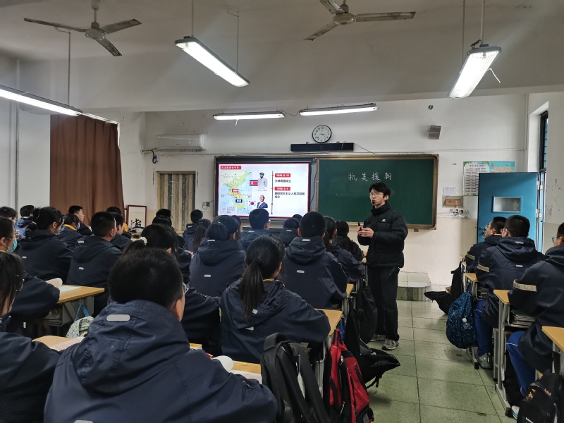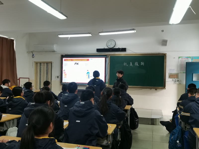 八年级晏豪杰老师讲的是下册第一单元第2课抗美援朝,在本节课中教师通过文字史料、历史地图等多媒体的展示帮助学生了解中国人民志愿军入朝作战的背景,认识中国人民志愿军抗美援朝的必要性。引导学生通过自主学习,掌握抗美援朝战争的大致经过及结果。最后通过学生讲述黄继光、邱少云等相关的英雄事迹,体会中国人民志愿军战士爱国主义、革命英雄主义和国际主义精神,培养学生振兴中华的历史使命感和责任感。