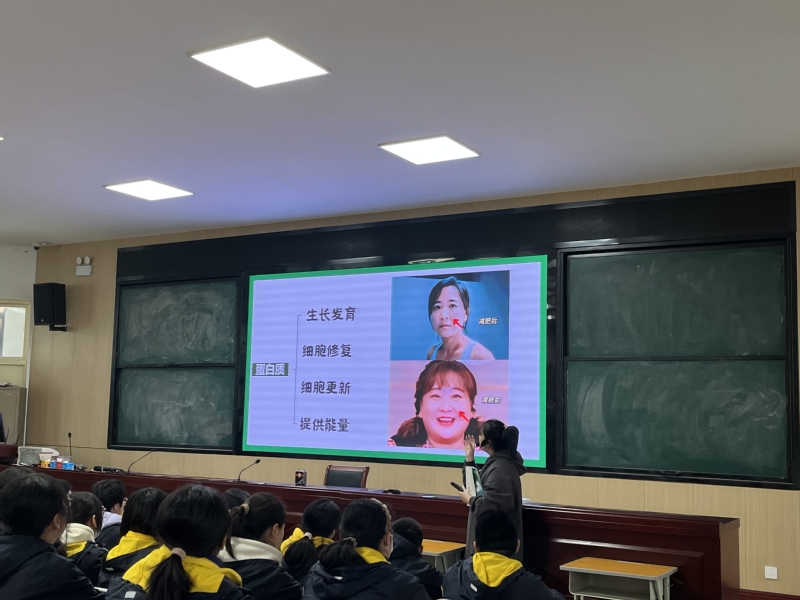 初一年级张乃淑老师在一号楼一楼进行了一次精彩的生物课展示。张老师以《食物中的营养物质》为题,通过新颖的材料,流畅的授课,丰富的活动等让学生了解了食物中的各种营养成分如糖类、蛋白质、脂肪等,并理解这些成分对人体的作用和影响,同时还了解了人体在缺乏一些无机盐或维生素时自身的健康会出现哪些问题。让学生以此为基础与实际生活相联系初步了解营养学知识。