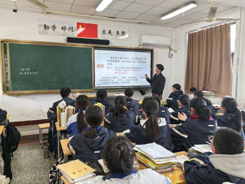 三月开学,不少学生在假期模式和学校模式的切换中出现情绪低落、疲惫和无精打采,这是一种季节性情感障碍。老师带领同学们通过画树感知自己的情绪变化,缓解这种情绪,找到调解的办法。来自2203班的孙一宸表示:画完树木后听了老师的分析,让我更加了解和认识到自己的情绪状态。通过观察和分析画作,我找到平了衡和调整情绪的方法,这次测试是一次宝贵的心理探索之旅,让我更加珍惜和关注自己的内心世界。