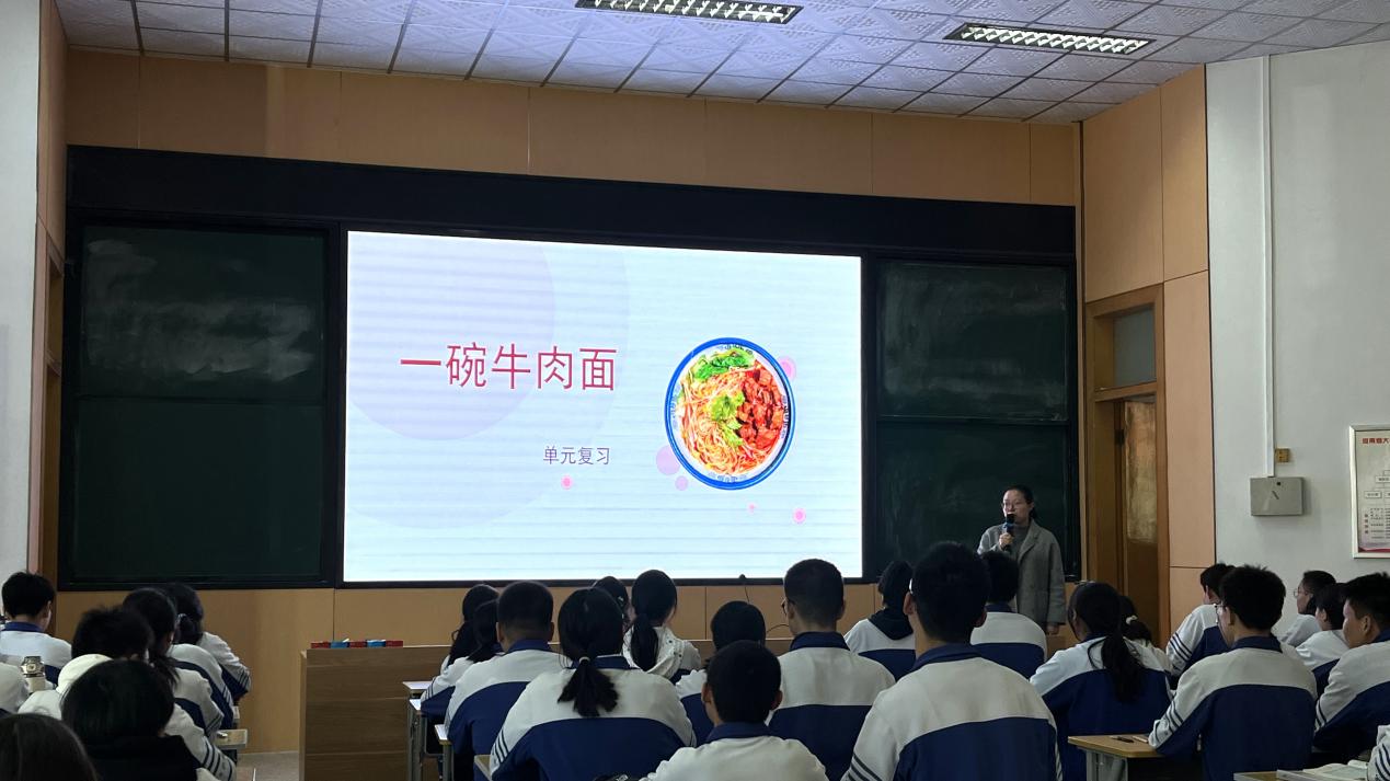 胡晶茹老师执教的《一碗牛肉面》一课,以一碗牛肉面为主题,从牛肉面的原料面粉的来源入手,分析牛肉面中的营养、味道和盛放牛肉面的材料,最后以清洗碗中油渍结束。课堂依次复习了化肥、营养成分、复分解反应、材料以及除油污的方法等知识。用一碗牛肉面的学习情境,将所学知识串联起来,激发学生学习兴趣,让化学走进生活;授课过程中,运用希沃投屏技术,及时反馈学生复习情况;重难点知识以小组讨论的形式展开,有助于学生互相促进,互相学习。