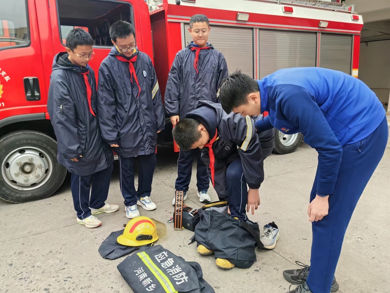 在消防员讲解的过程中,同学们积极参与体验,锻炼自己的安全救援能力,同时通过实际行动,同学们也感受到消防战士们日常工作的艰辛和不易,纷纷表达出了由衷的敬佩。