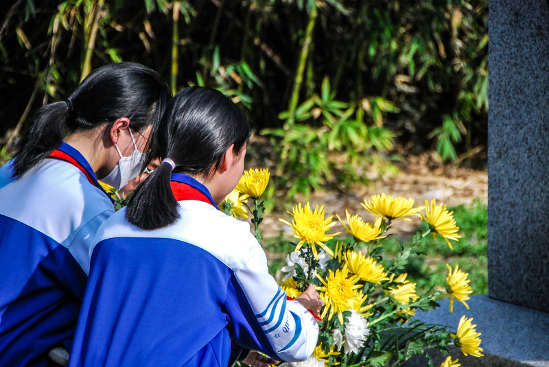 在老师和工作人员的引导下,同学们有序地瞻仰烈士墓,向烈士敬献鲜花,并参观“烈士事迹陈列馆”,深入了解烈士们的英勇事迹,感受他们崇高的精神风貌。