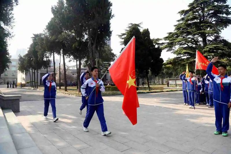 在国歌奏响之际,全体同学以激昂的旋律表达了对祖国的深情厚意和对先烈们的无尽缅怀。随后,同学们又齐声唱响《我们是共产主义接班人》,每一个音符都洋溢着青春的力量和坚定的信念。
