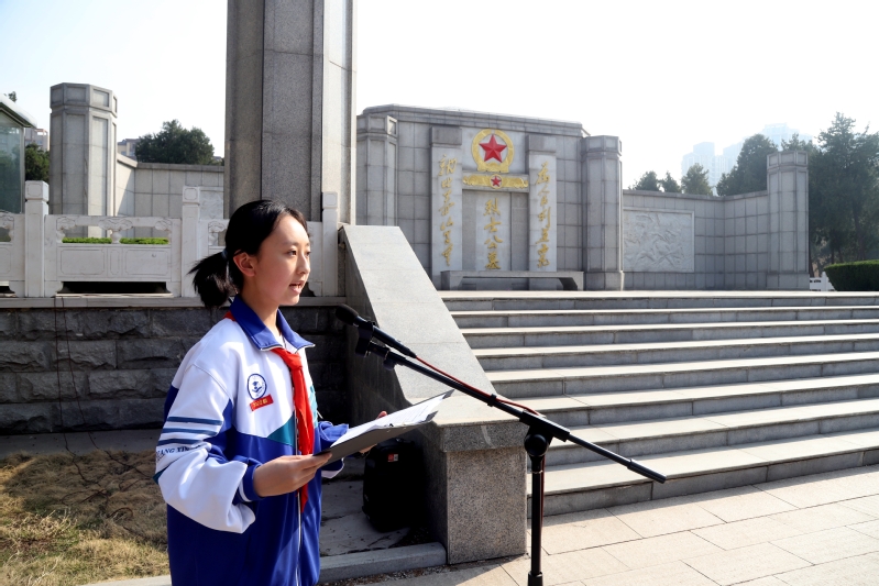 初二年级王露梓、黄睿遥两位同学进行了诗朗诵。他们用诗歌的形式深情地表达了对先烈的缅怀,呼吁大家要铭记历史,不忘初心,砥砺前行。