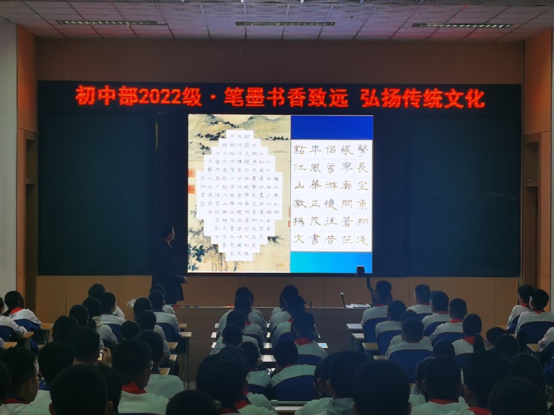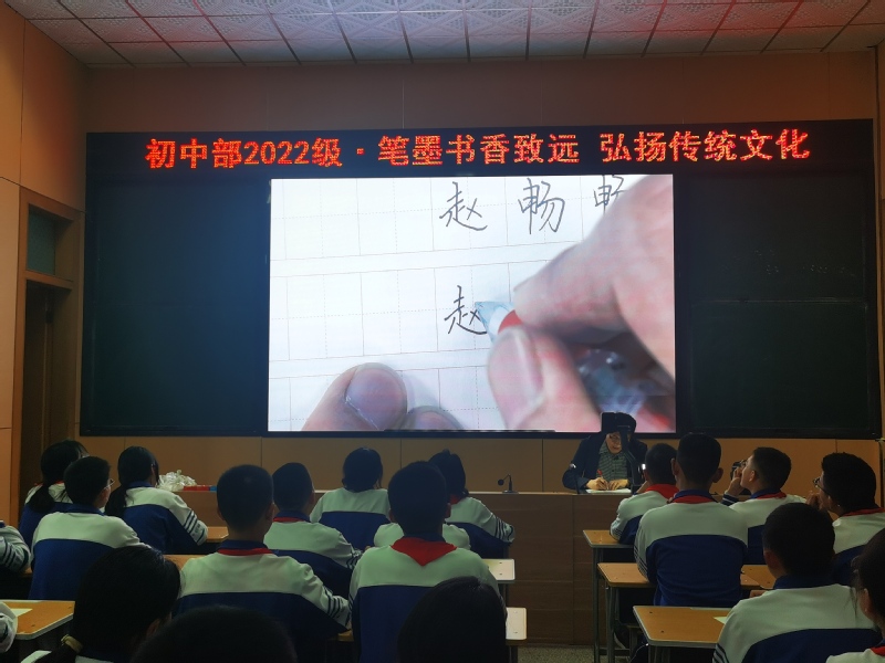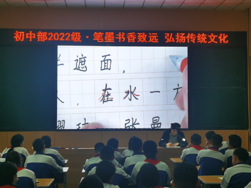 为贯彻落实《关于实施中华优秀传统文化传承发展工程的意见》和教育部关于规范汉字书写、开展书法教育的要求,传承中华优秀传统文化,4月8日下午,初中部2022级开展“笔墨书香致远 弘扬传统文化”书法专题教育活动。