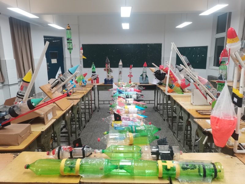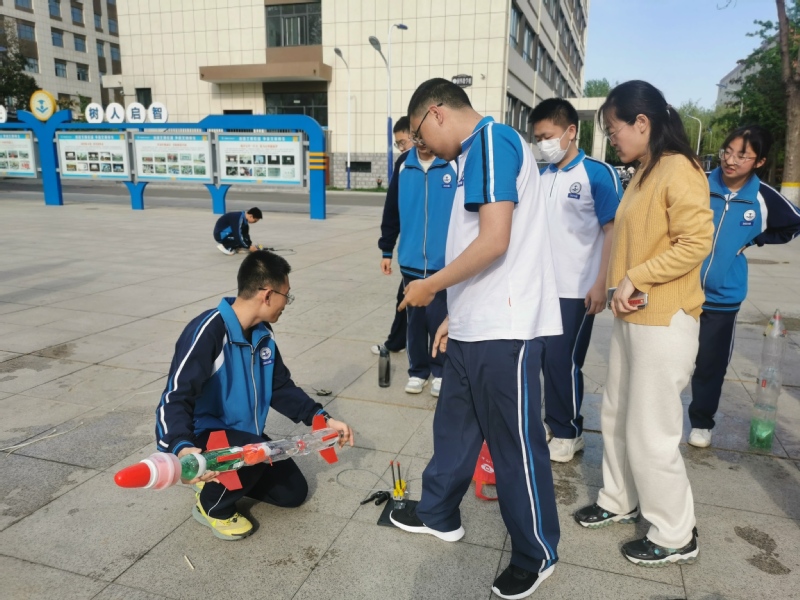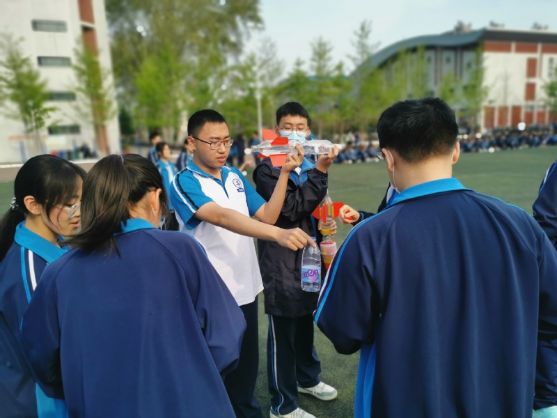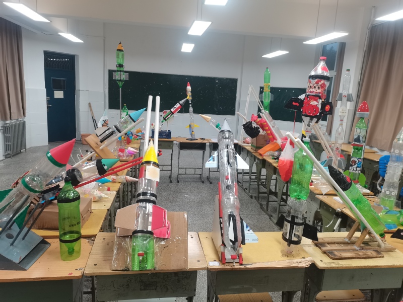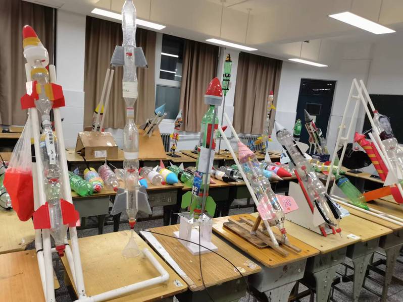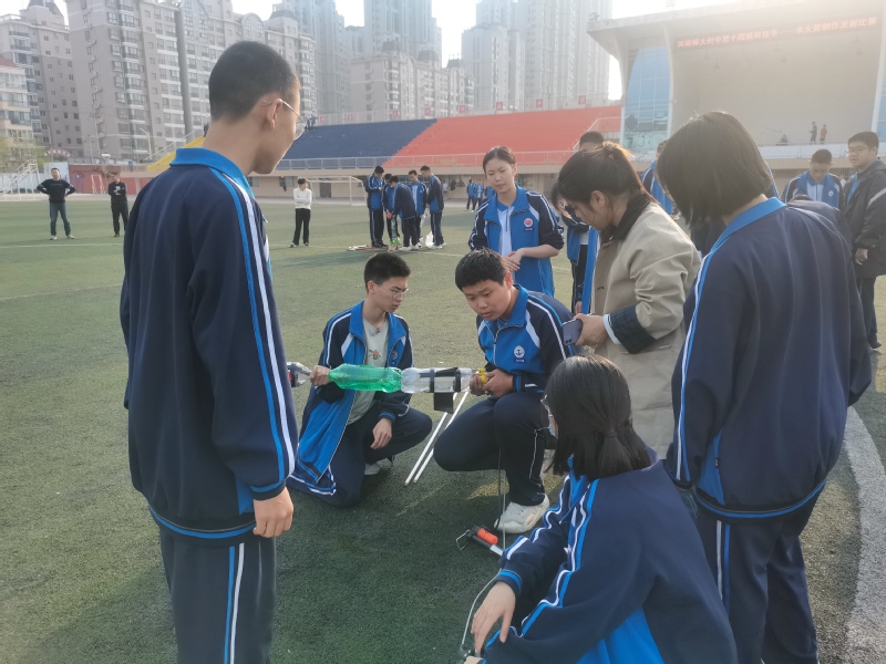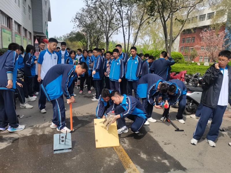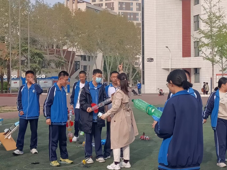 活动现场,参赛的同学们激情澎湃。每个小组带来了自己精心制作的水火箭,在物理老师的指导下进行了多次测试和调整,确保参赛的水火箭都已经达到最好的发射状态。
