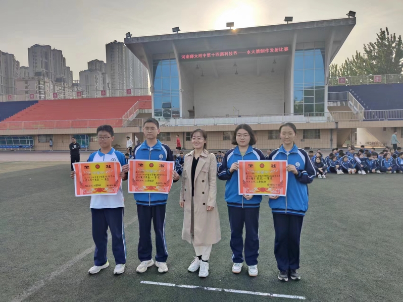 经过一番激烈角逐,我们的“火箭设计师”凭借巧妙的设计和通过抛体运动计算出的发射角度,最终评选出了本次比赛的优胜者,赢得了在场师生的热烈掌声,学校为他们颁发了获奖证书。