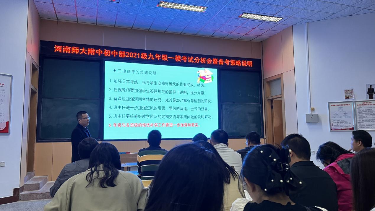 为全面分析总结一模考试情况,为下一阶段教学提供科学的数据支持和方法指导,4月9日下午,初中部2021级举行一模分析会暨备考策略说明。副校长陈景任、初中部主任周晋阳、副主任刘晨曦及初三年级全体教师参加了本次分析会,会议由初三年级副主任谢高通主持。