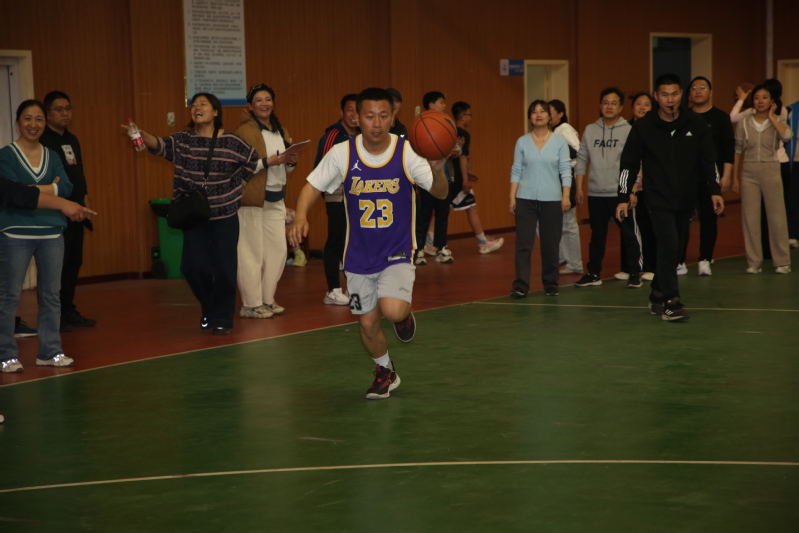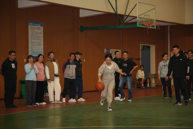 篮球馆内,教职工化身活力四溢的运动员,在篮球运球上篮接力赛中,展现出精准的投篮技巧和稳健的心理素质。球场健将从容出发后潇洒勾手,赛场新手谨慎运球间沉稳投篮,共同诠释着篮球运动的魅力,体现出我校教职工积极向上的竞技状态。