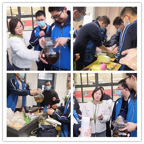 从查阅资料,书写实验步骤、准备新鲜菜品、统筹各种用具(案板、菜刀、香料、电磁炉、煮锅、消毒酒精、一次性手套、医用口罩等),到洗坛、晾坛、切菜、装坛,再到最后的开坛。整个活动过程中,同学们激情高涨,团结协作、高效组织、耐心细心,出色完成了本次泡菜制作活动。