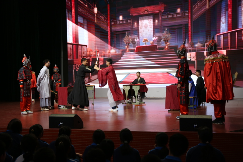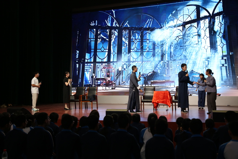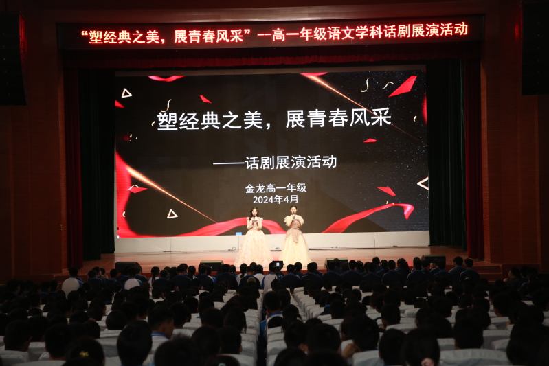 舞台华彩,戏梦人生。高一年级语文学科话剧展演活动于4月29日下午成功举办。为弘扬优秀经典文化,丰富校园文化生活,探索学生多途径发展,并帮助学生更好地理解课文内容,体验书中情节,感悟作者情感,进一步推进学校创新人才的素质教育,此次话剧展演的策划、编导、演员、舞台设计等全部为高一年级学生自行参与组织,全体语文老师指导陪伴。