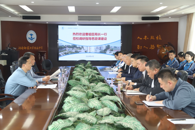 4月30日上午,市教育局党组书记、局长曹祖臣,到我校调研指导思政课建设,与学校领导及师生代表座谈交流并上思政课。市教育局党组成员、副局长冯建和思想政治工作科科长张振磊陪同调研。校领导张银付、刘齐晋、侯伟及学校思政课建设相关部门负责同志及师生代表参加座谈。座谈会由冯建主持。
