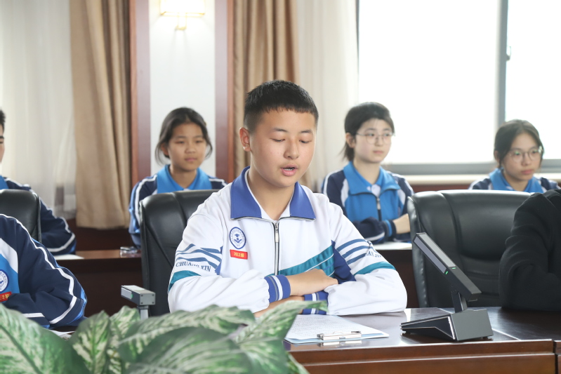 随后,思政课专任教师王福东、初二年级学生代表周维和高二年级学生代表杨蕙宁先后发言,汇报了开展思政课课程建设、促进专业成长的经历体会和思政课学习的收获感悟。