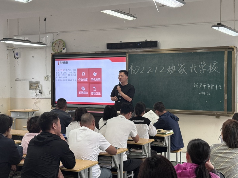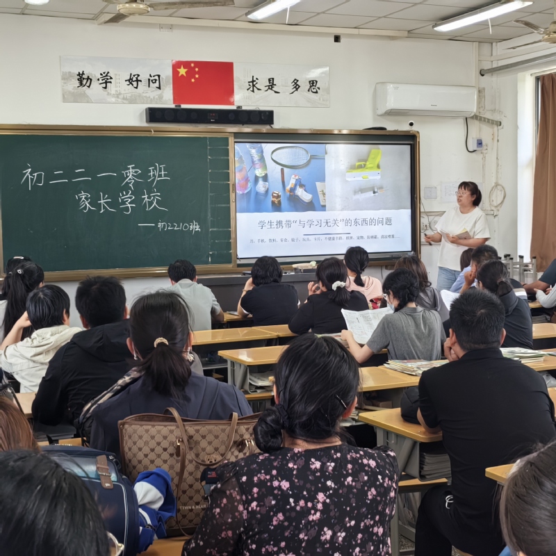 在学校的大力支持和学部的统筹安排下,各班积极规划、认真准备。各班班主任先从“珍爱生命 预防溺水”“树立法治意识 远离校园欺凌” “提高警惕 防范电信诈骗”“心理健康教育”等方面重点讲述了如何守护未成年人健康成长,然后以期中考试成绩分析为基础,从学习方法、学习态度等方面给予家长具体指导,并强调了地理、生物中考的重要性,最后重申文明校园的创建要求,赢得家长的阵阵掌声!