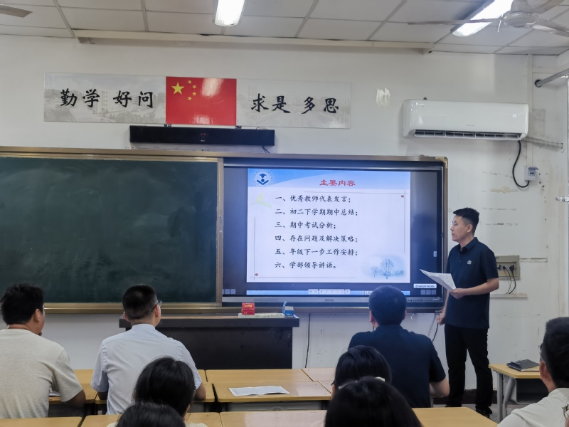 为落实双减政策,打造全域性成长课堂,切实有效地帮助学生全面成长,为下一步教育教学工作指明方向,5月13日下午,初中部2022级举行“擘画担当新蓝图 踔厉奋发再启航”期中质量分析会。学部副主任刘晨曦及全年级教师参加会议,会议由年级副主任刘宸鸣主持。