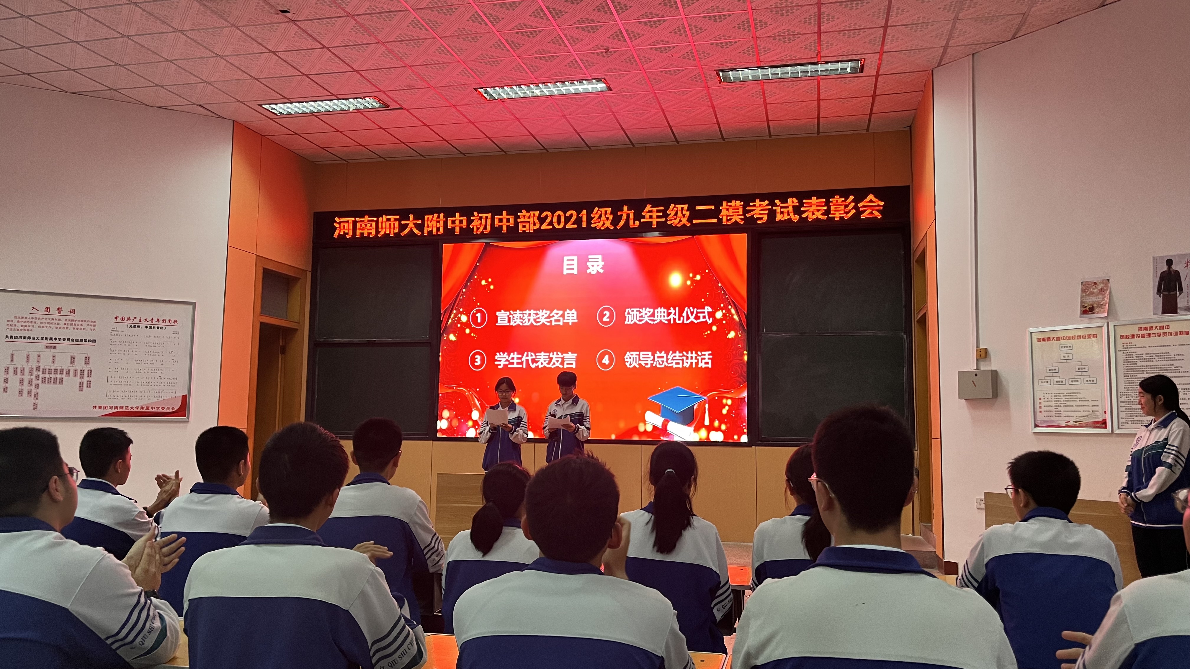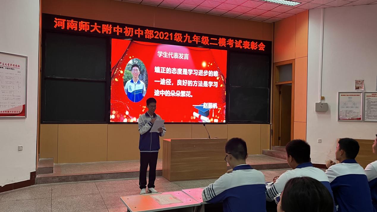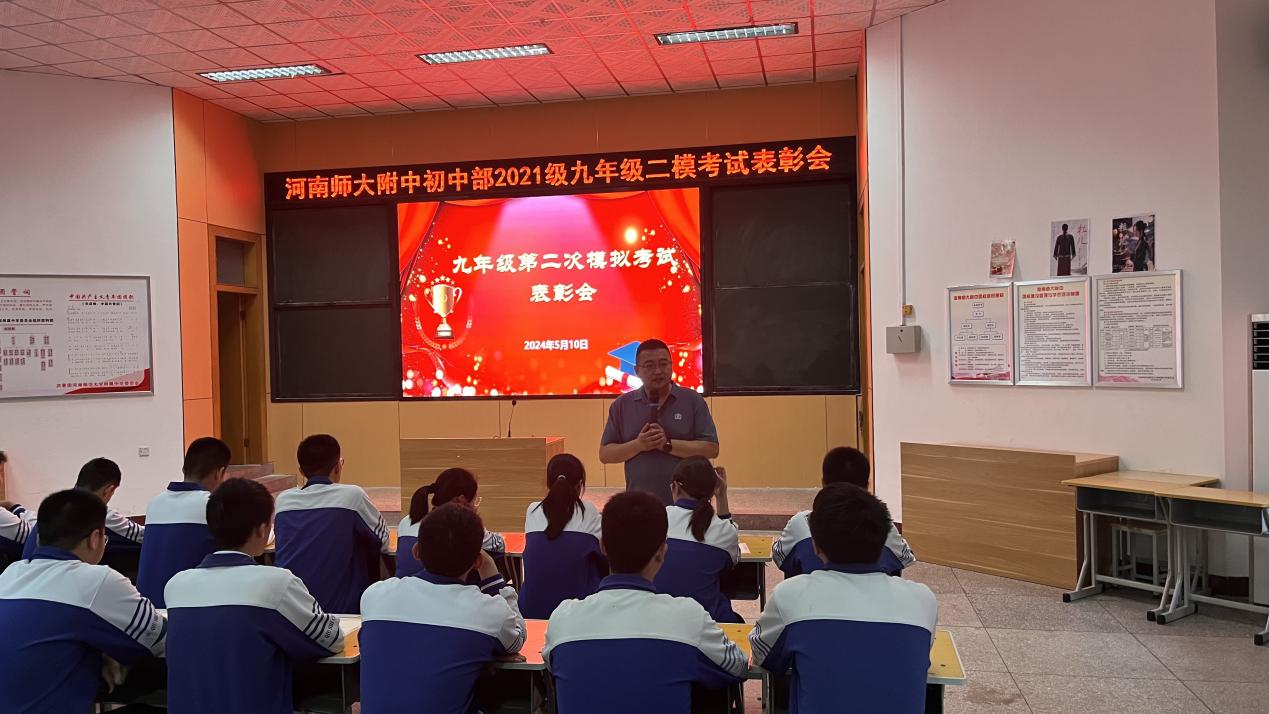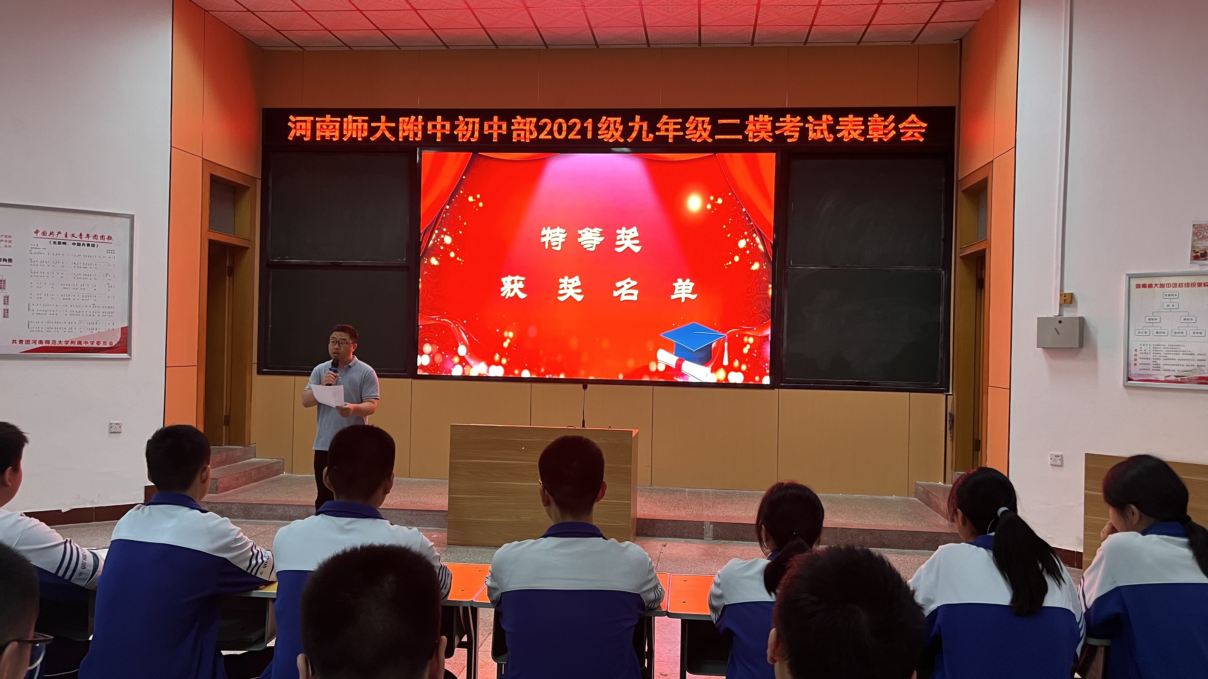 为表彰先进、树立榜样,激发学生见贤思齐、奋勇争先的斗志,5月10日下午,初中部2021级在阶梯教室举行二模成绩表彰会。