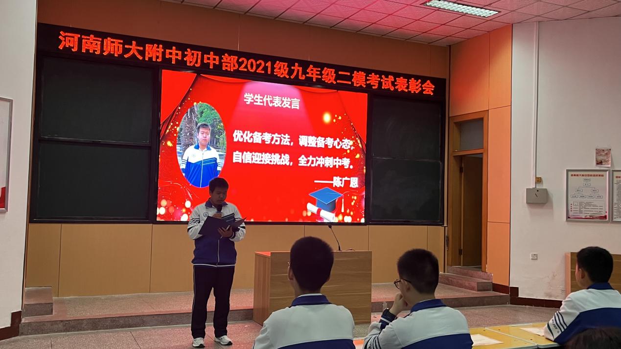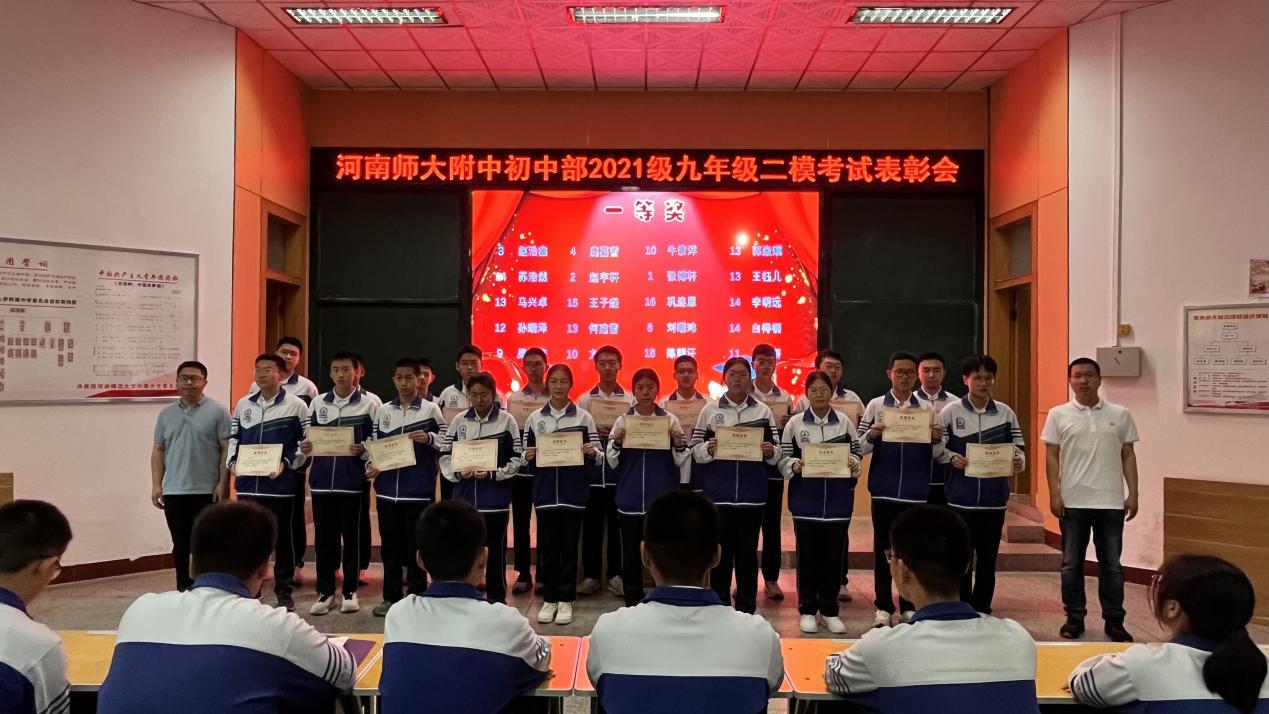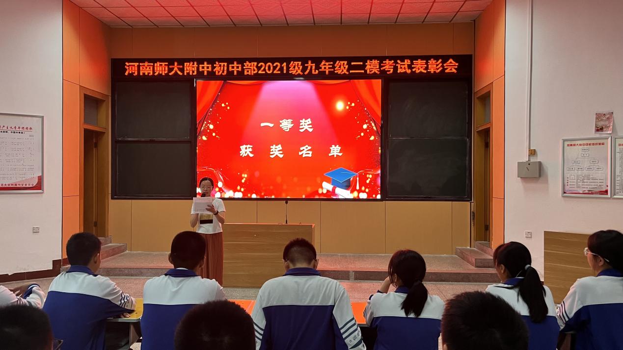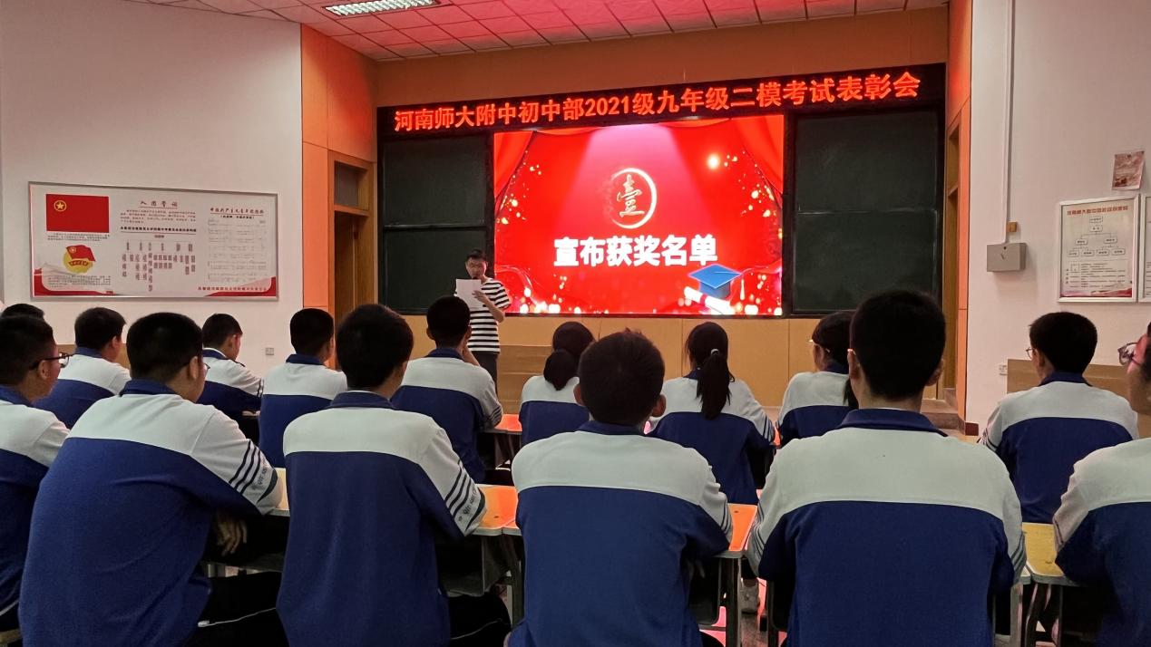 为表彰先进、树立榜样,激发学生见贤思齐、奋勇争先的斗志,5月10日下午,初中部2021级在阶梯教室举行二模成绩表彰会。