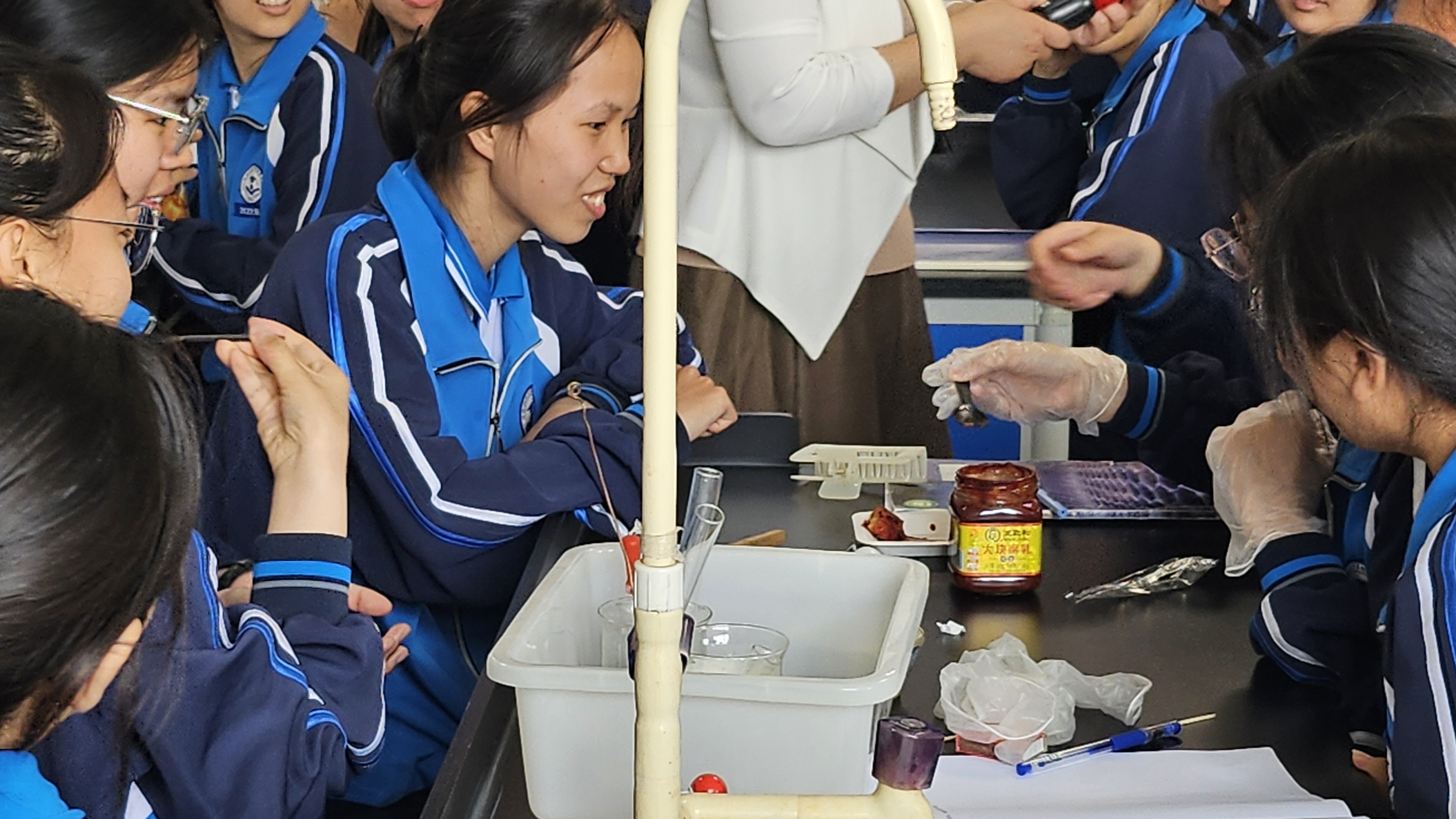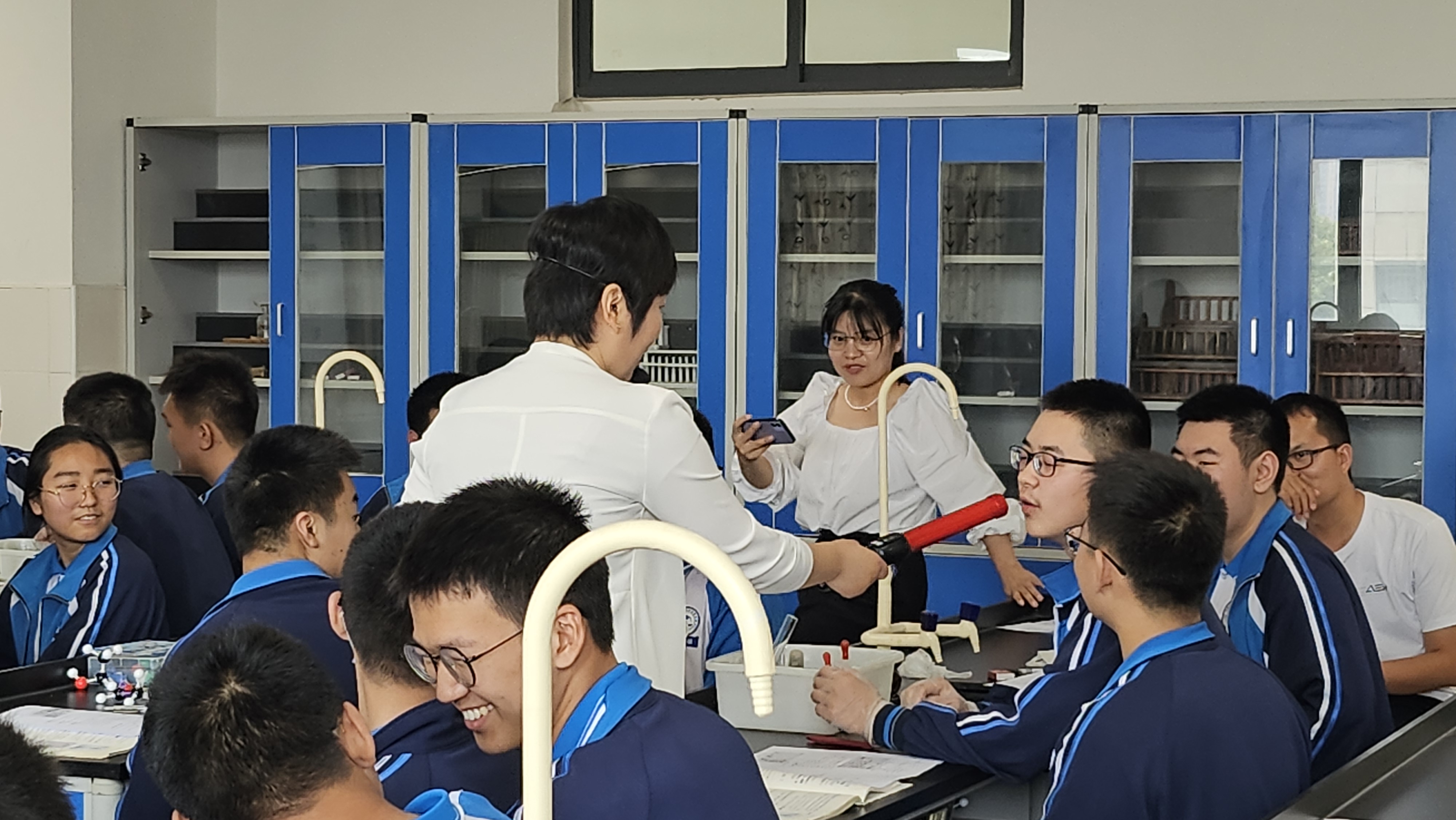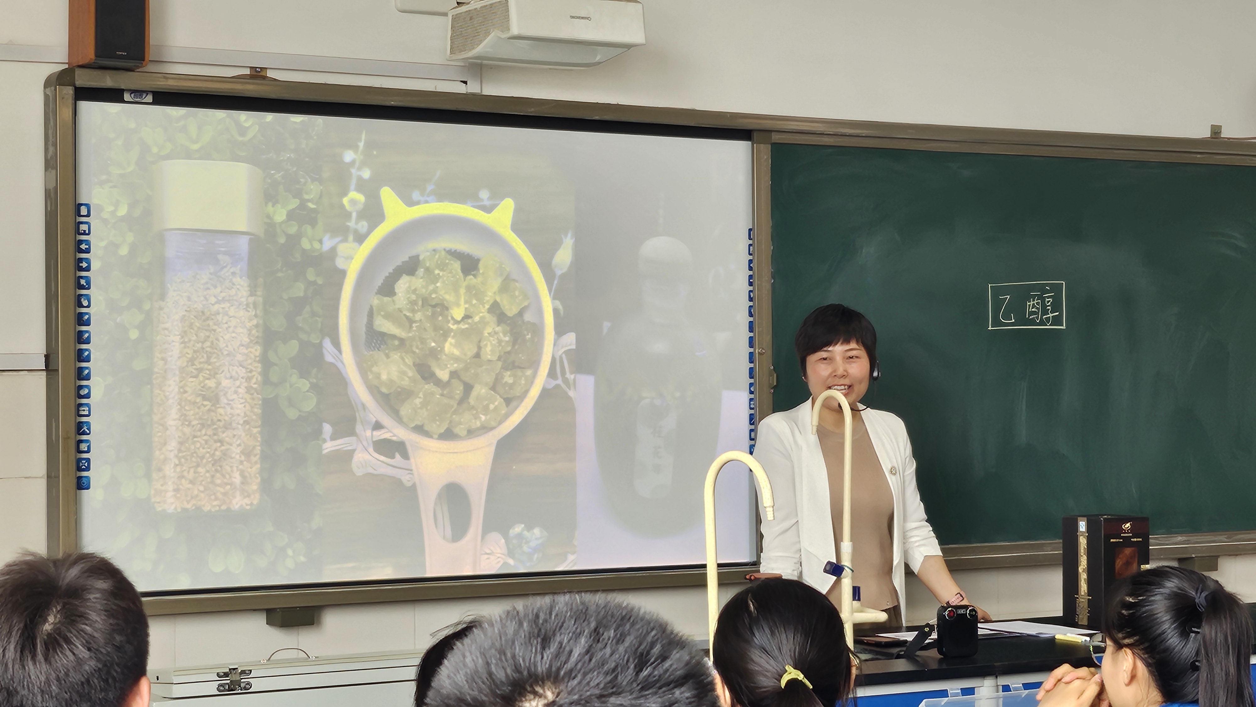 本次带来优秀课例展示的是来自高二年级化学组的杨倩老师,授课的题目是《基于证据推理和微宏结合的视角初识乙醇》。高中部学部主任刘毅,副主任李忠堂、刘付生及高中部全体理科教师进行观摩、学习。