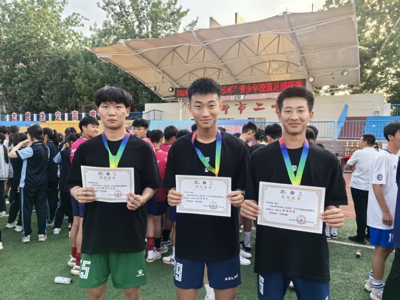 在团队荣获高中男子超级组冠军的同时,郭新航同学荣获“最佳球员”称号,彭奕程同学荣获“最佳射手”称号,杜浩哲荣获“最佳守门员”称号。