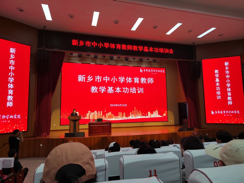 为加强新乡市中小学体育教师队伍建设,进一步提升体育教师的专业技能和教育教学能力,2024年5月24日下午,由新乡市教育科学研究院主办,我校承办的新乡市中小学体育教师基本功培训活动在我校道德讲堂成功举行,局属学校和各县(市)区的400多名体育教师参加了本次培训。在开幕式中,新乡市教育科学研究院体育与健康学科教研员吕淑芳介绍了出席本次会议的嘉宾:河南师范大学附属中学副校长陈景任、新乡市教育科学研究院副院长魏巍、安阳市虹桥中学张伟。