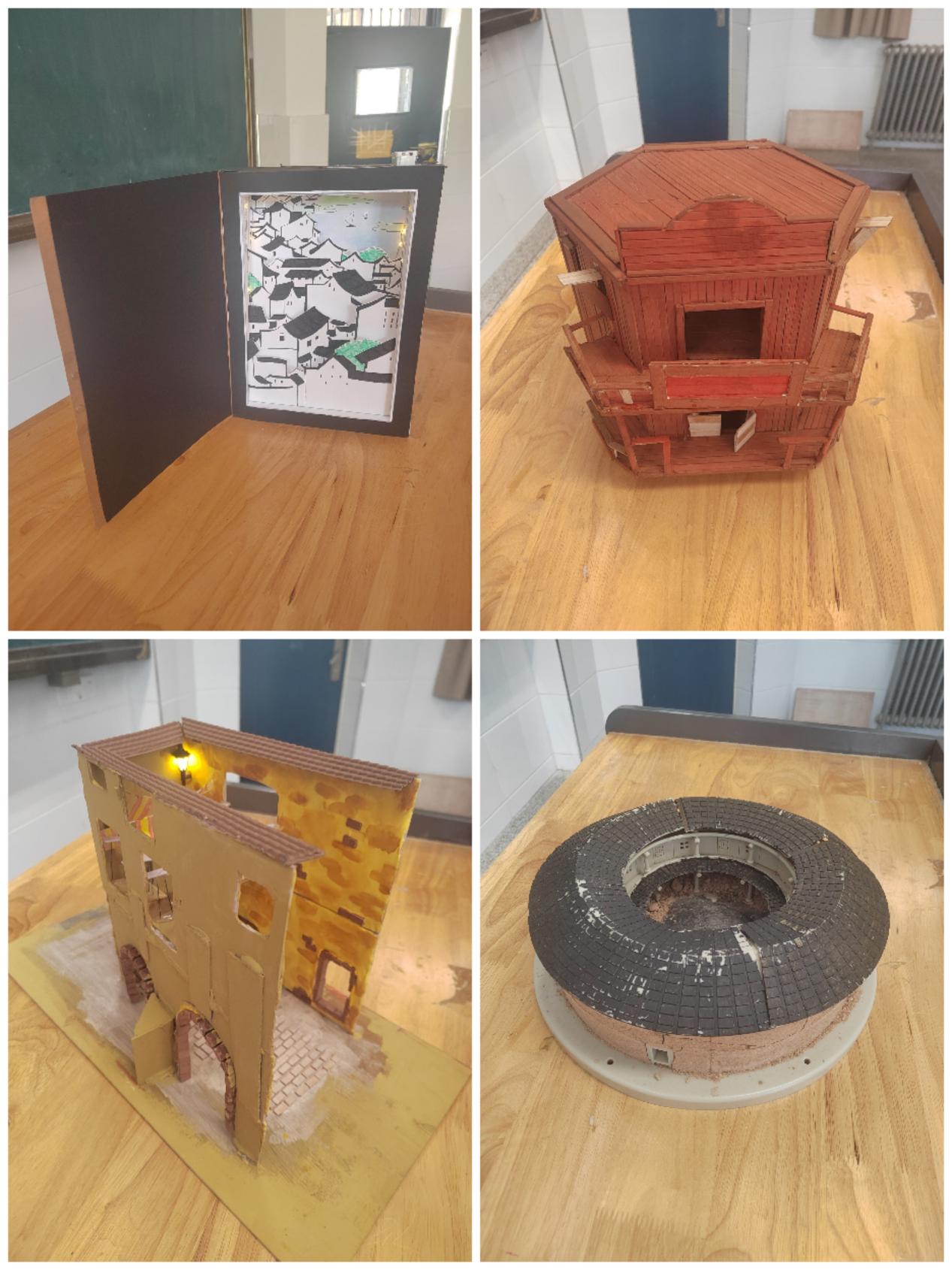 从构思到选材,从制作到完善,每一个步骤都凝聚着同学们的汗水与智慧。木板、纸板、砖瓦、泥土、黏土……这些看似平凡的材料,在同学们手中焕发出了全新的生命力,创作出了一件件灵动且富有教育意义的民居作品。