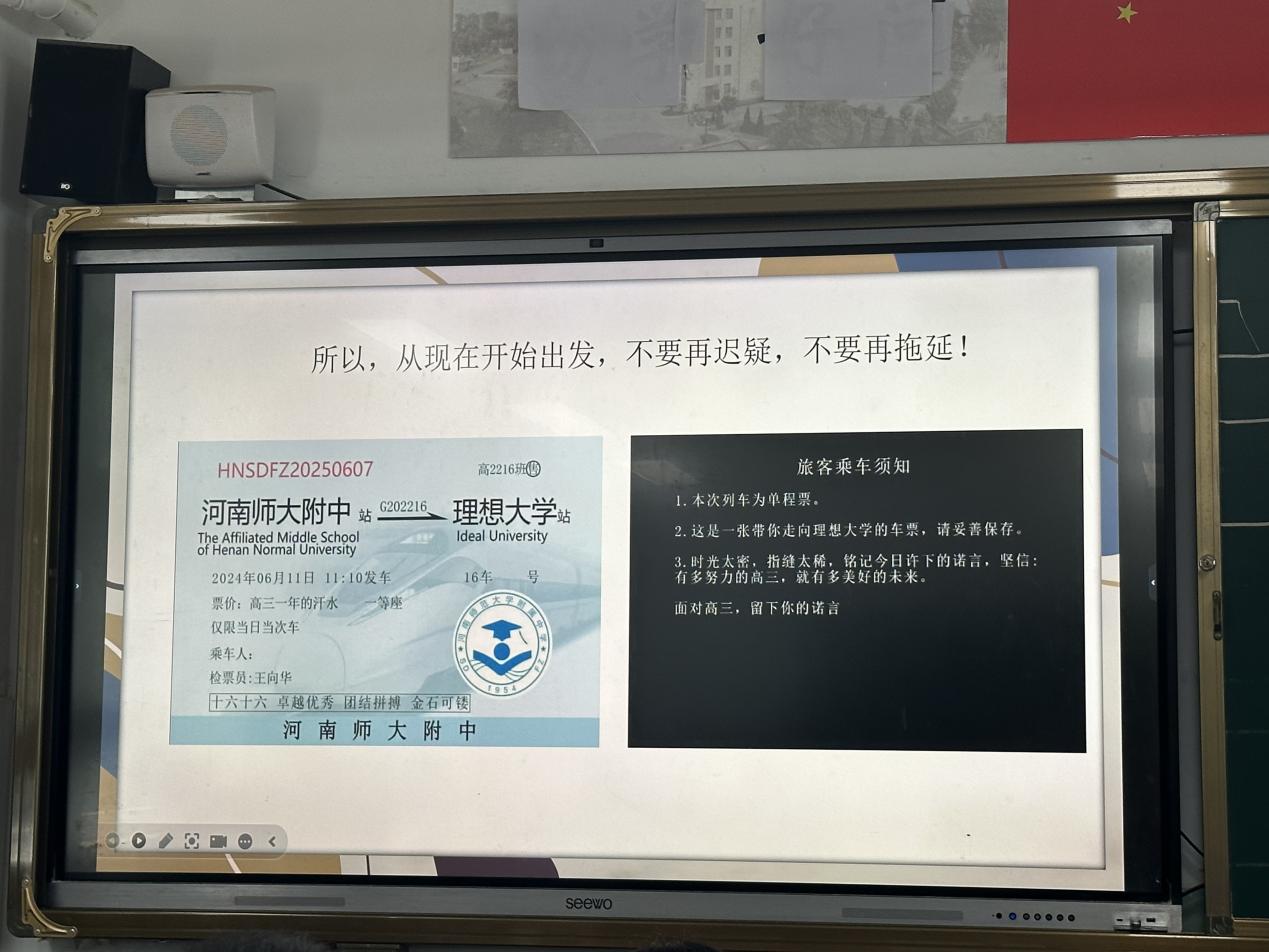 星光不负赶路人,青春不负奋斗者。首先,班主任王向华老师带领全班同学先算清楚“时间账”,去除周末和法定节假日以及各类考试的时间,高三学年学习时间不足200天。在家委会的配合之下,王老师给每位同学印发了一张通向“理想大学”的“车票”,并让同学们在“车票”背面写下了自己的诺言。时光荏苒,须臾已逝,高三,就这样开始了,是铿锵有力,也是静水深流,这笔“时间账”激发了全体同学心底的时间意识,唤醒了同学们心中的紧迫感。