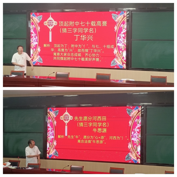随后,结合附中70周年校庆以及国际部师生姓名,路老师自制了一些灯谜,并鼓励学生回答。学生们热情高涨,积极抢答,活动现场气氛热烈,充满了欢声笑语。