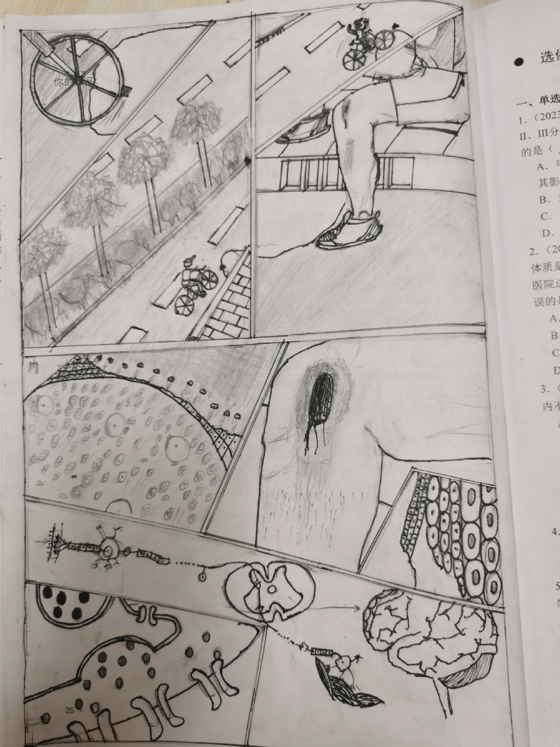 为了丰富学生暑期的学习生活,加深对生物学科知识的理解,培育学生的学科核心素养,激发学生的学习兴趣,生物组的老师本着趣味化、个性化的原则为同学们准备了一份特别的作业——趣味漫画。要求学生运用自己所学的生物知识,发挥想象力,创作出独一无二的作品。