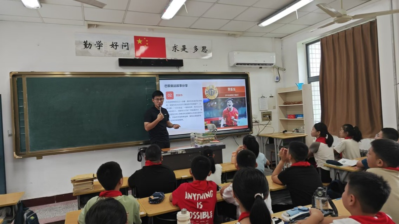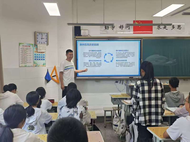 在课堂上,体育教研组老师们首先带领学生们回顾了刚刚结束的巴黎奥运会精彩瞬间。通过视频资料、图片展示及生动讲解,学生们了解到中国代表团在巴黎奥运会上取得的骄人成绩,包括射击、游泳、乒乓球、跳水等多个项目的金牌突破。特别是中国射击队以5金2银3铜的优异成绩,不仅打破了历史记录,还展现了中国运动员的卓越技艺和顽强拼搏精神。此外,中国游泳队首次在男子100米自由泳项目中夺冠,以及中国乒乓球队包揽五项金牌的壮举,都让学生们倍感自豪和振奋。