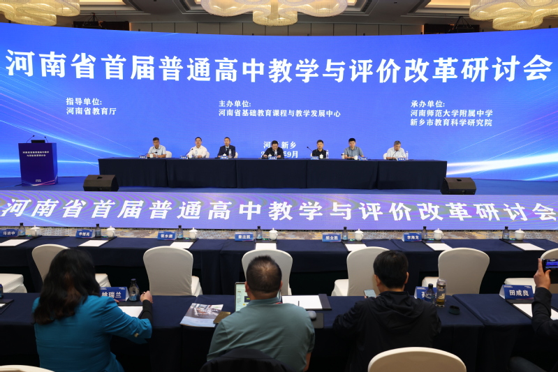 在全省基础教育界深入学习贯彻党的二十届三中全会和全国、全省教育大会精神之际,9月28—29日,河南省首届普通高中教学与评价改革研讨会在新乡举行。此次研讨会在河南省教育厅的指导下,由河南省基础教育课程与教学发展中心主办,我校和新乡市教育科学研究院承办。会议以“聚焦新高考,打造新教学”为主题,围绕“普通高中育人方式变革的实施路径、高考评价改革最新动向及教学启示、基于学生核心素养的课堂教学创新”等普通高中教学与评价改革热点,通过主旨报告、教学展示、专家讲座、校长论坛等形式开展研讨交流。河南省基础教育课程与教学发展中心高考各学科教研员、各地市基础教育教研部门负责同志、高中校长及教师代表1000余人参加会议。