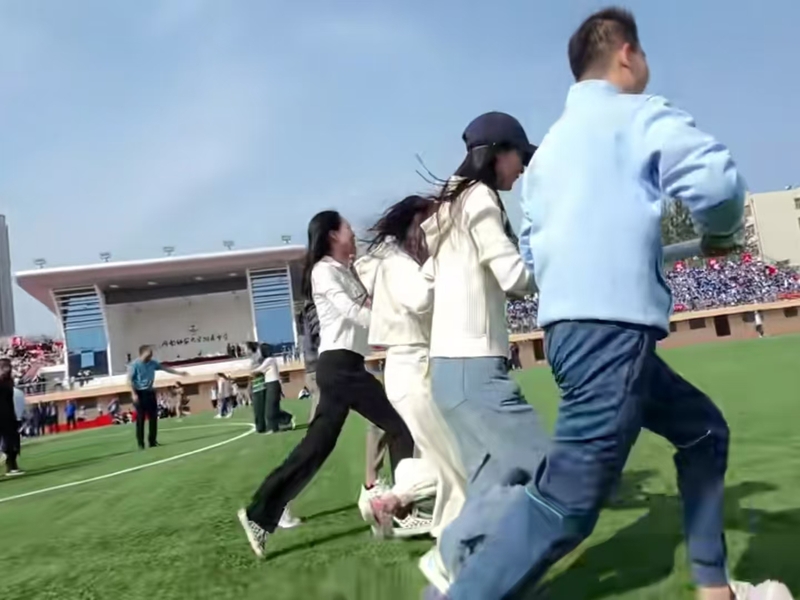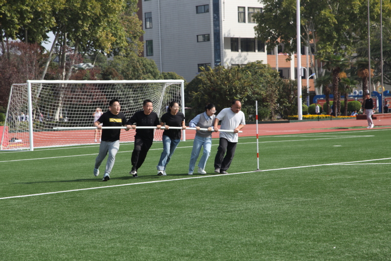 与此同时,教职工运动会也同步进行,为这场体育盛宴增添了更多温馨与欢乐。老师们脱下平日里的严肃外衣,换上了运动装备,展现了不一样的风采。集体跳绳、旋风跑、拔河比赛等项目,不仅拉近了师生之间的距离,也让大家深刻体会到团队合作的力量。